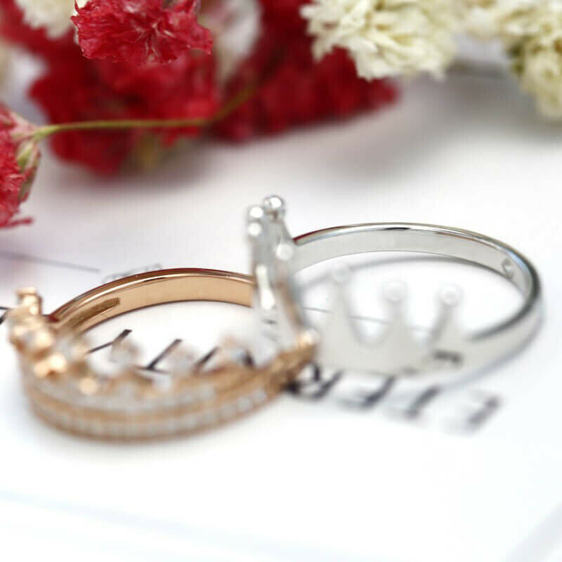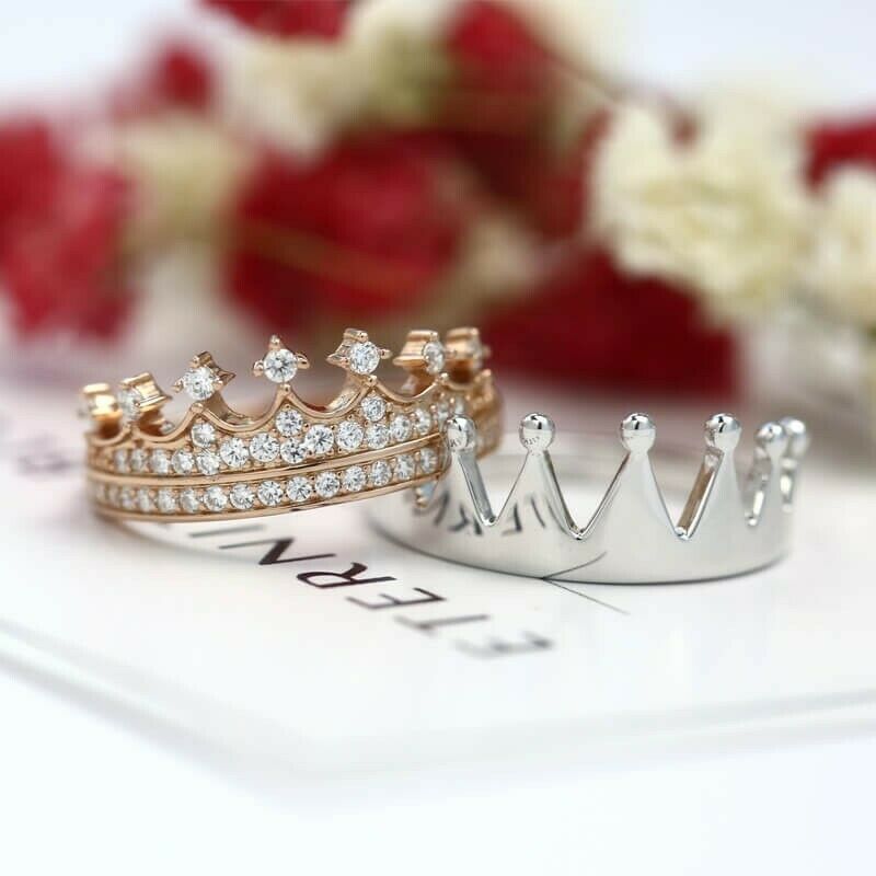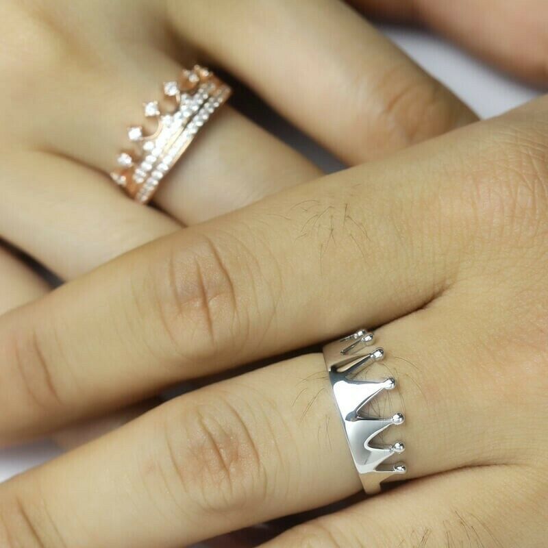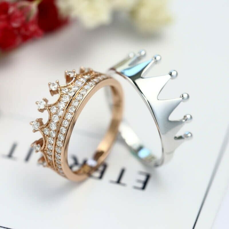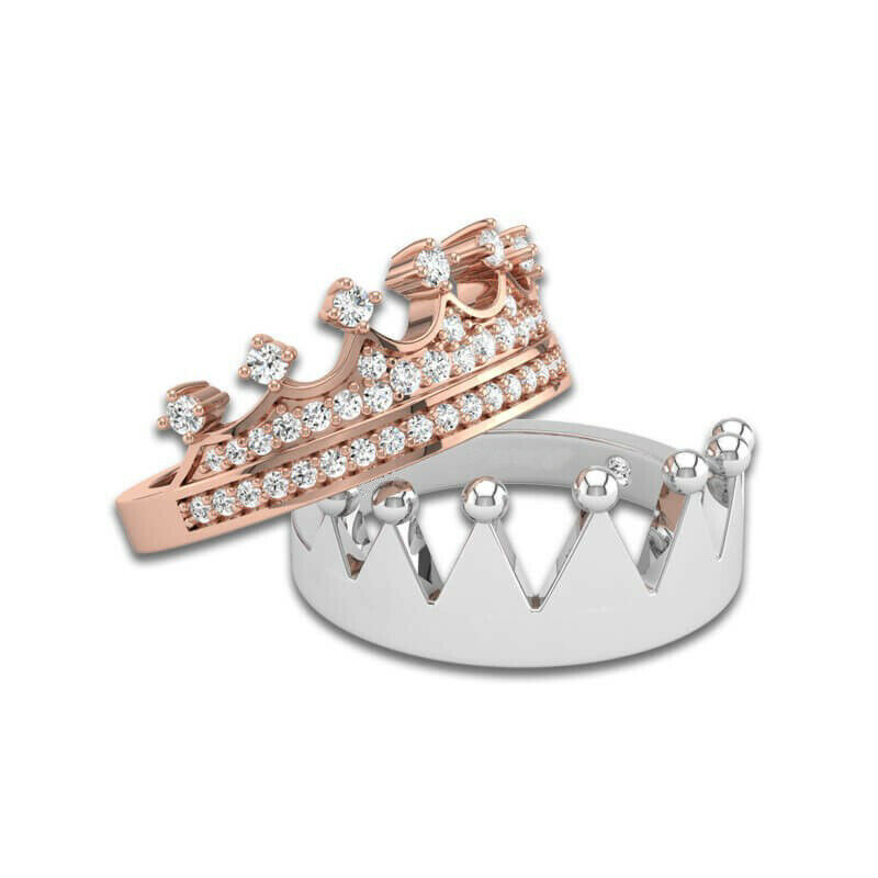 2Ct Round Cut Diamond King and Queen Crown Engagement Ring 14K White Gold Finish