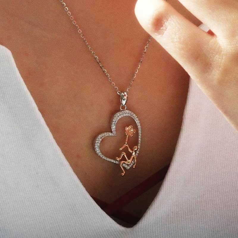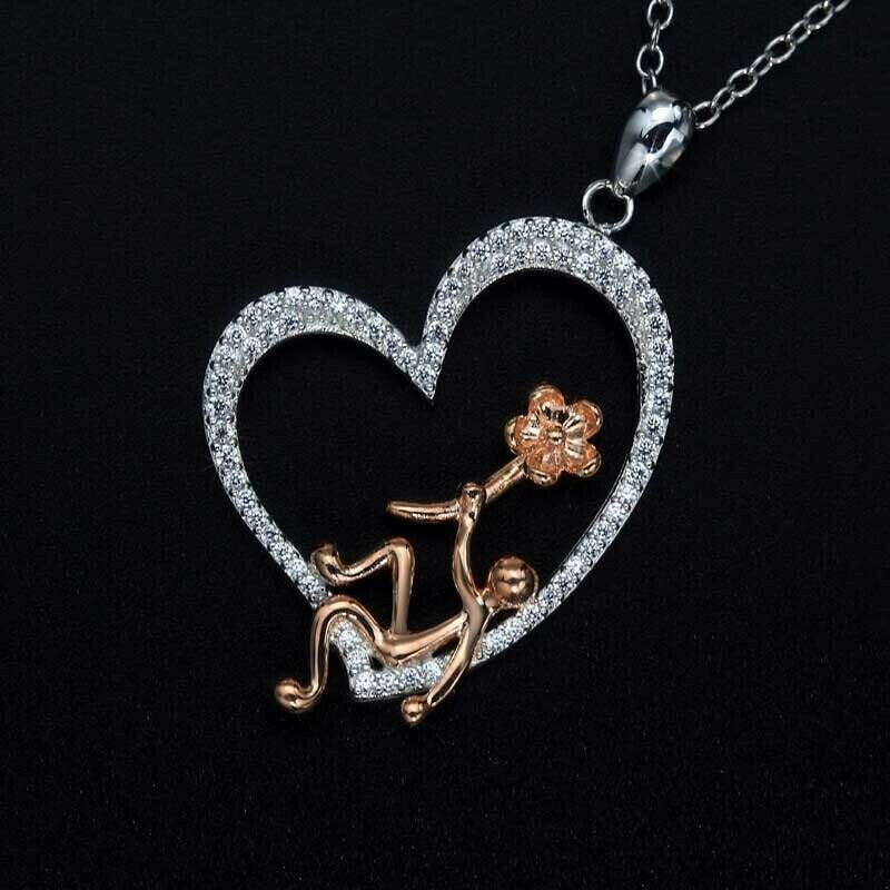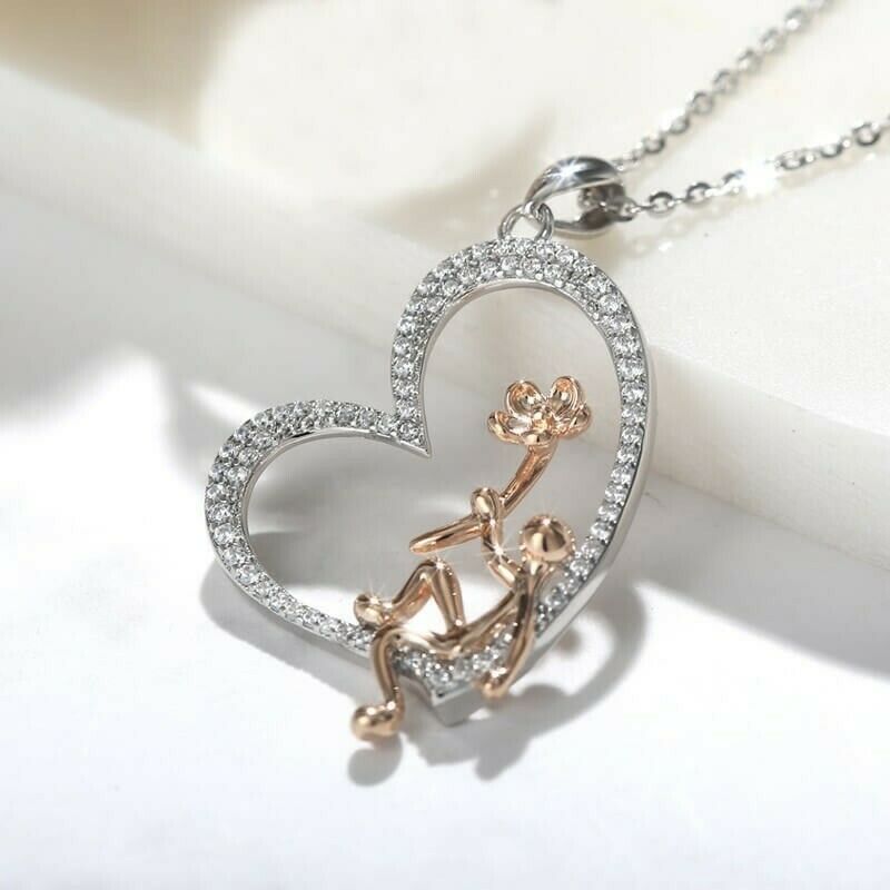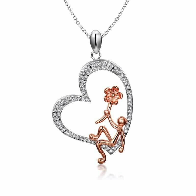 2Ct Round Cut Diamond Man With Flower Inside Heart Pendant 14K White Gold Finish