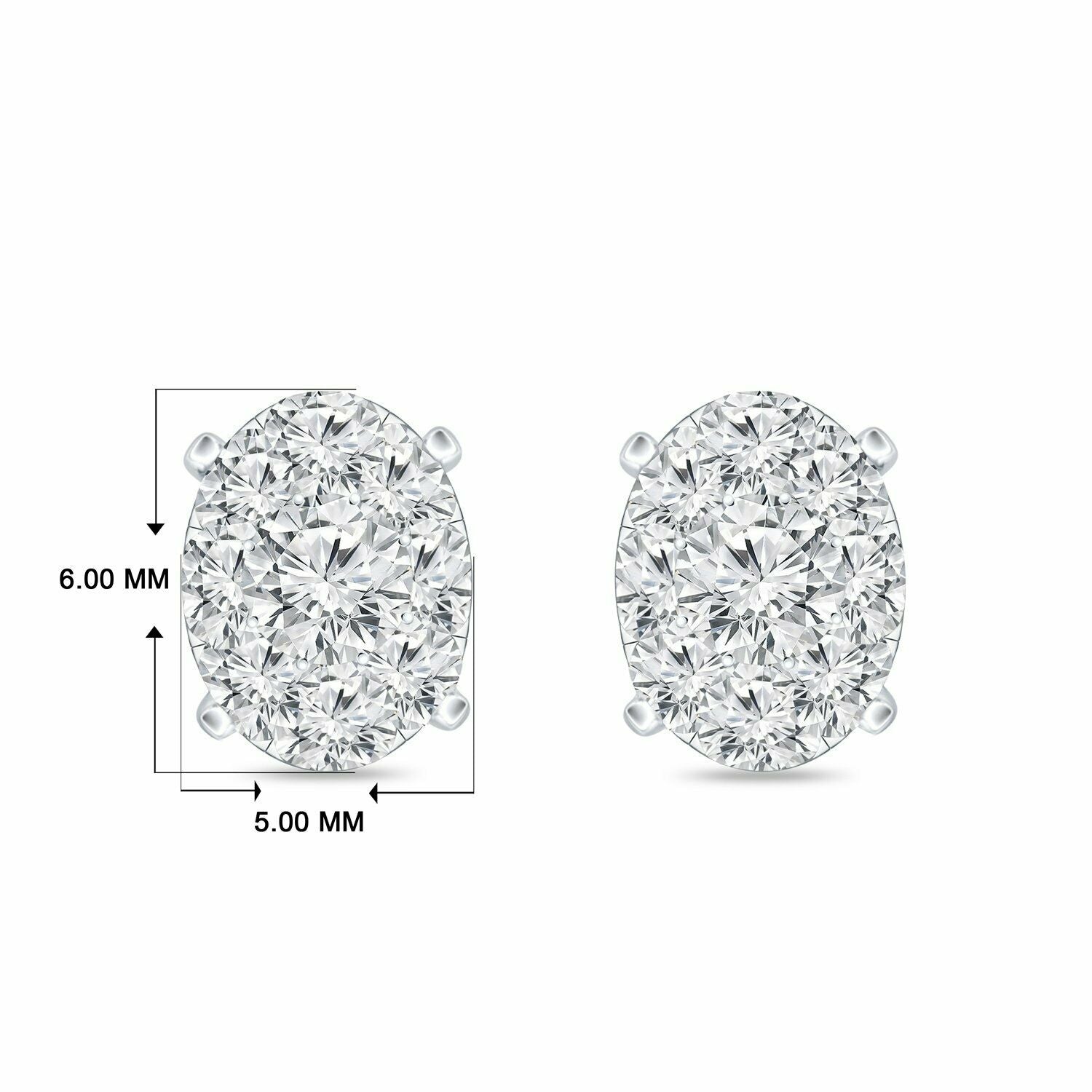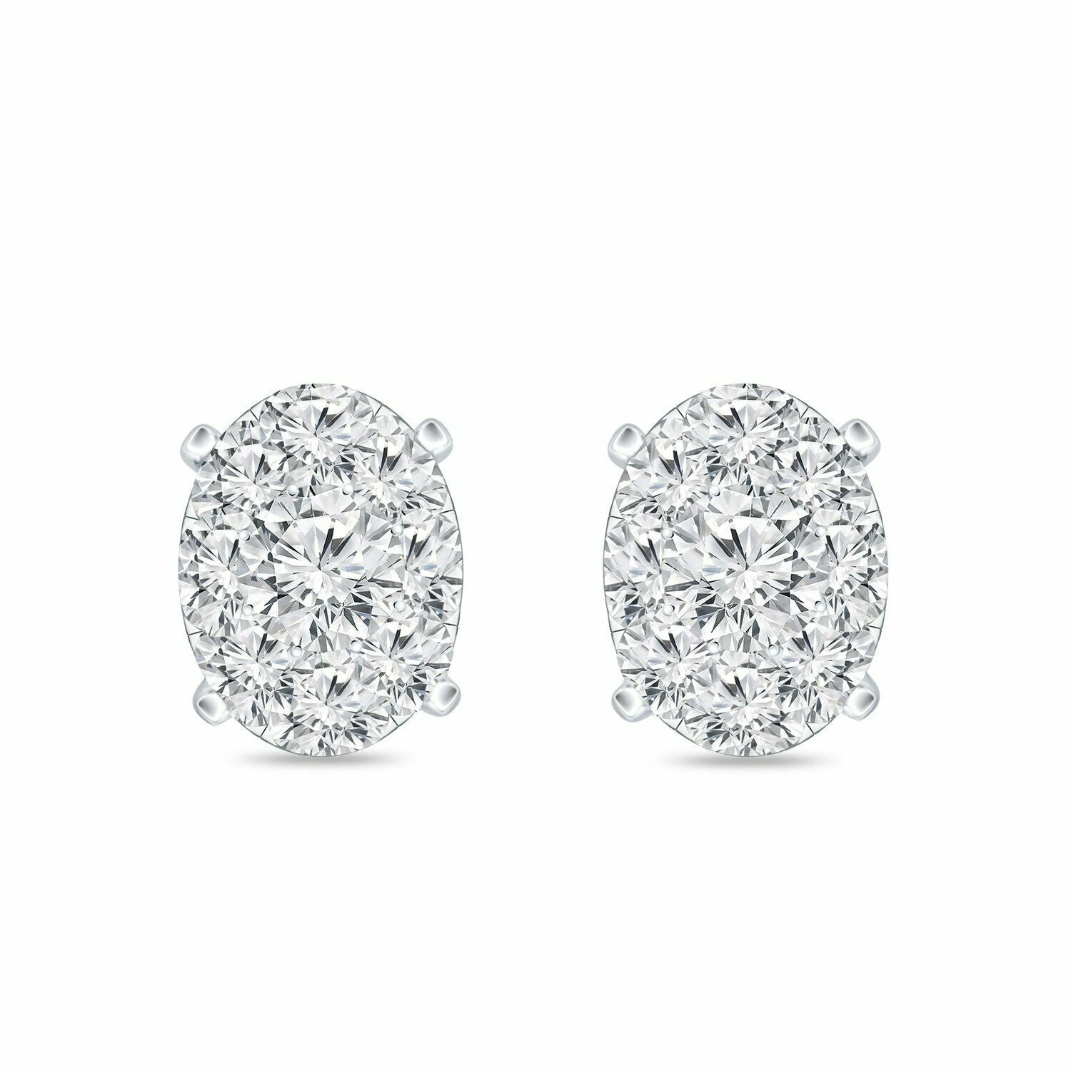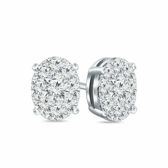 2Ct Round Cut Diamond Oval Shape Cluster Stud Earrings 14K White Gold Finish