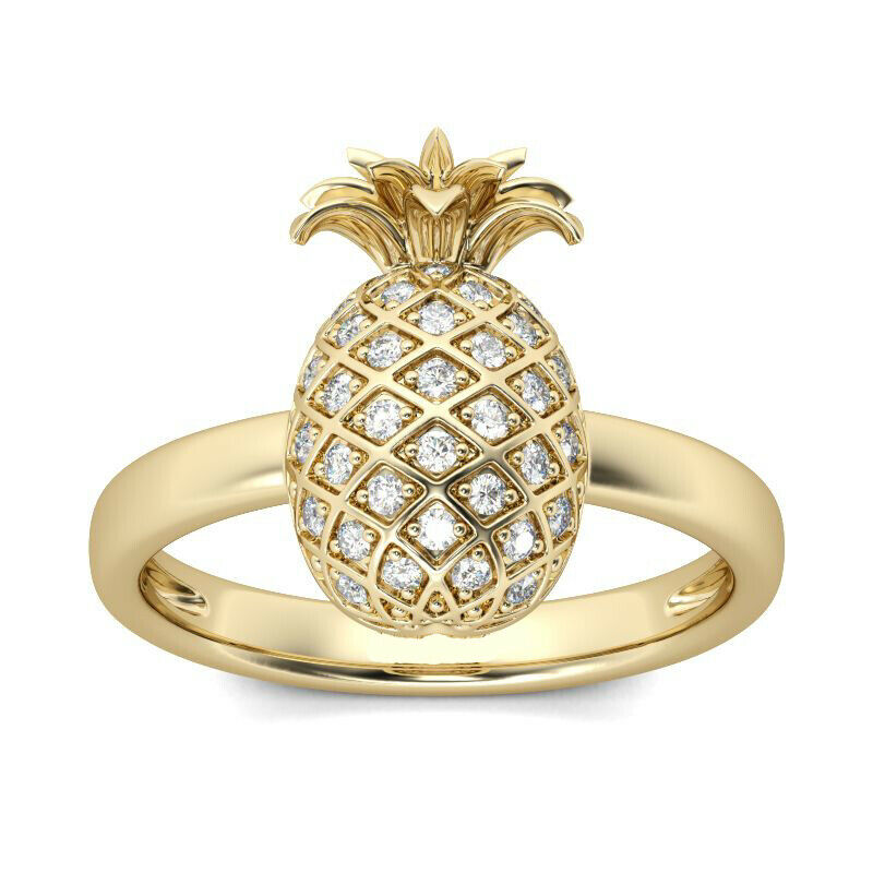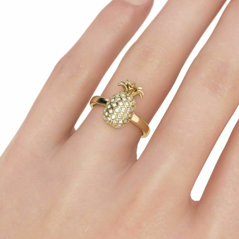 2Ct Round Cut Diamond Pineapple Design Engagement Ring 14K Yellow Gold Finish