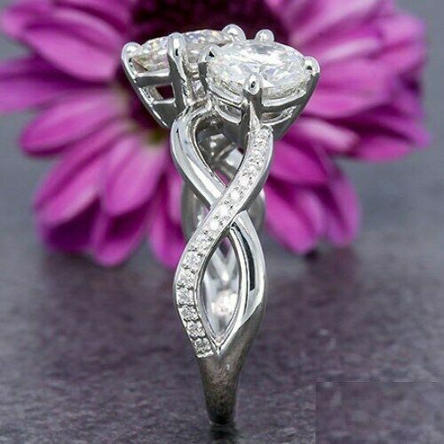 2Ct Round Cut Diamond Split Band Two Stone Engagement Ring 14K White Gold Finish