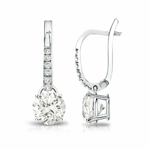 2Ct Round Cut Diamond Stylish Dangle Drop Earrings Women 14K White Gold Finish