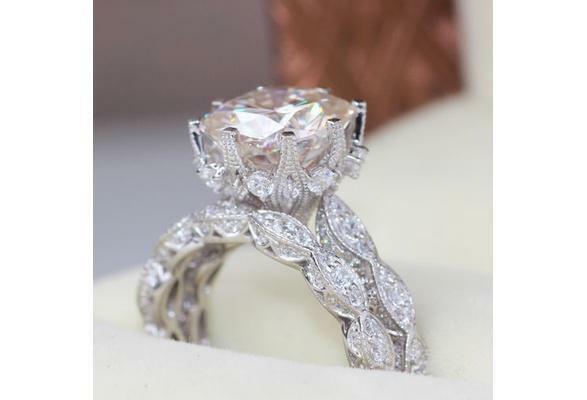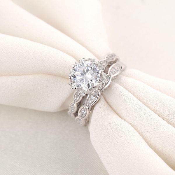 2ct Round Cut Diamond Vintage Antique Bridal Set Band Ring 14k White Gold Finish