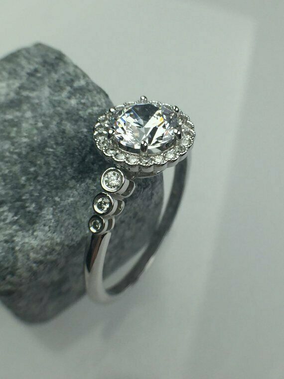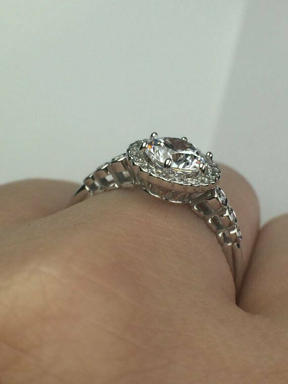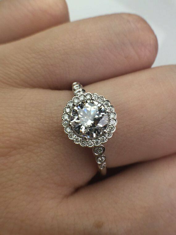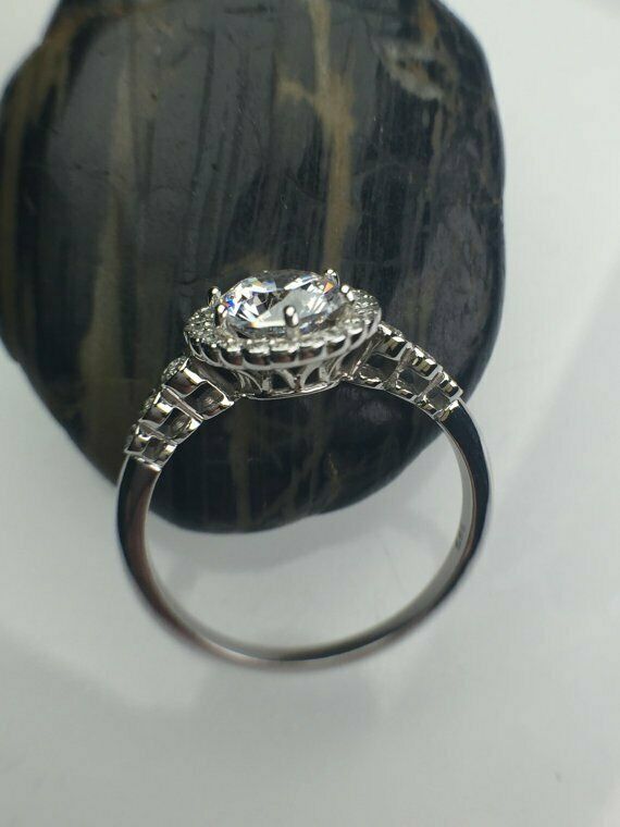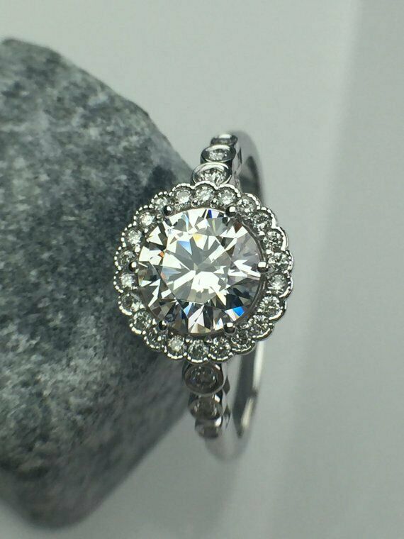 2Ct Round Cut Diamond Vintage Floral Halo Engagement Ring 14K White Gold Finish