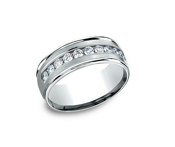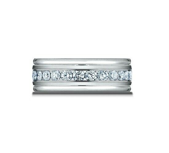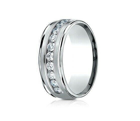 2Ct Round Cut DVVS1 Single Row Diamond Men Wedding Band 14K White Gold Finish