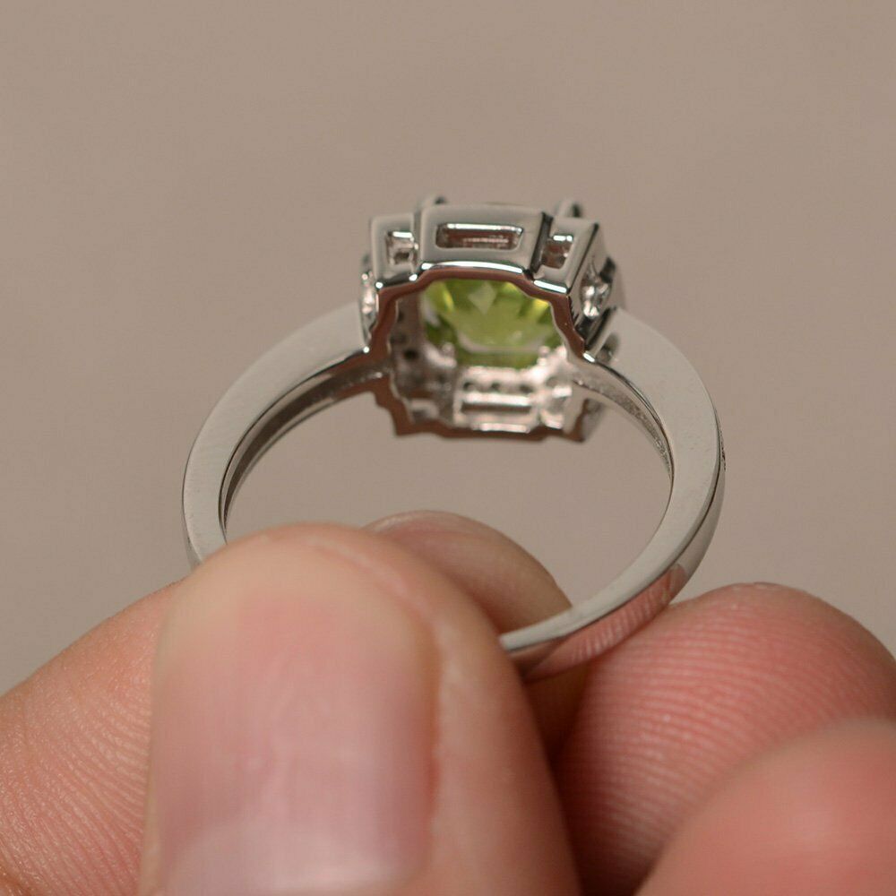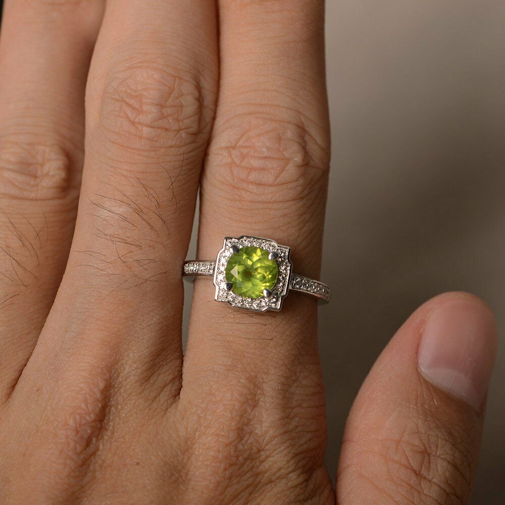 2ct Round Cut Green Peridot Engagement Ring 14k White Gold Finish Halo Promise