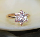2ct Round Cut Peach Morganite Diamond Flower Engagement Ring 14k Rose Gold Over
