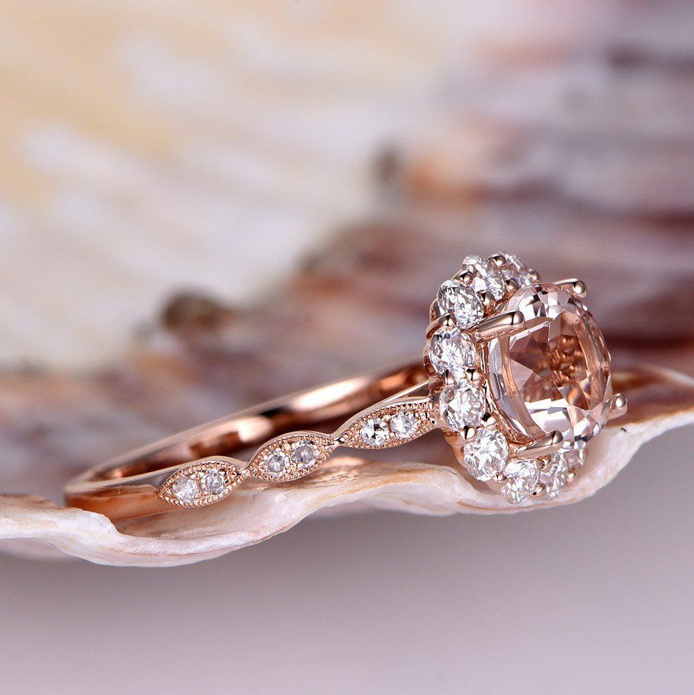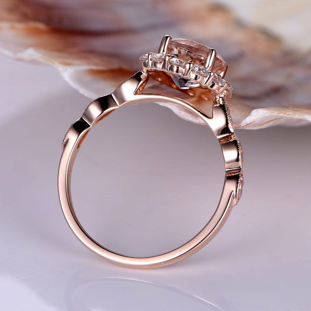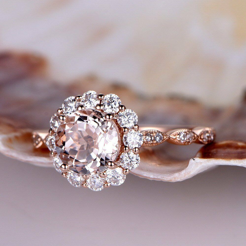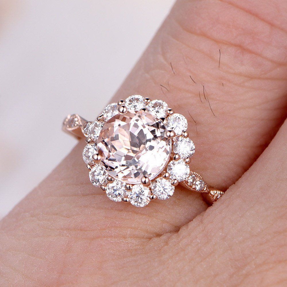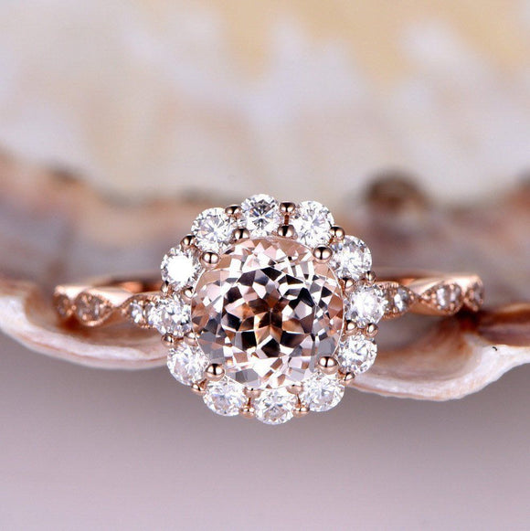 2ct Round Cut Peach Morganite Floral Design Engagement Ring 14k Rose Gold Finish