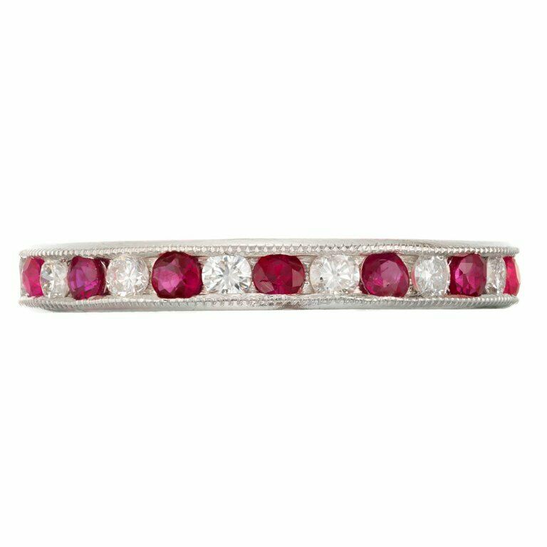 2ct Round Cut Pink Ruby Alternating Diamond Eternity Band 14k White Gold Finish