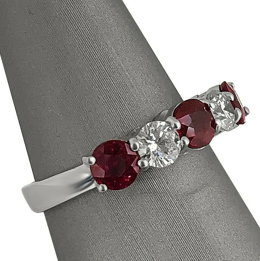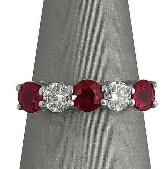 2Ct Round Cut Pink Ruby Diamond Five Stone Wedding Band Ring 14K White Gold Over