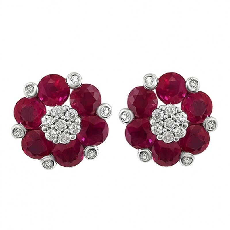 2Ct Round Cut Pink Ruby Diamond Floral Inspired Stud Earring 14K White Gold Over