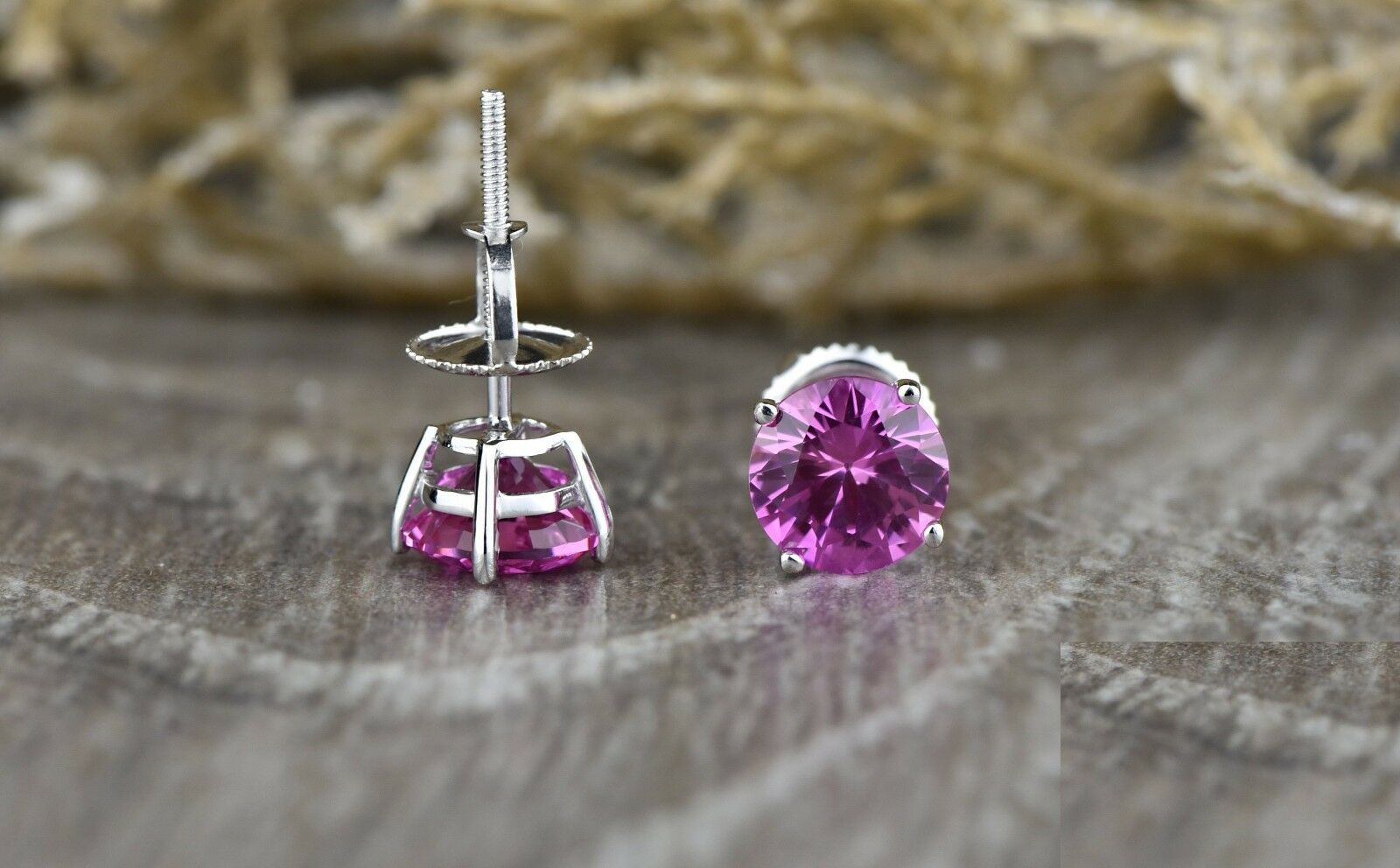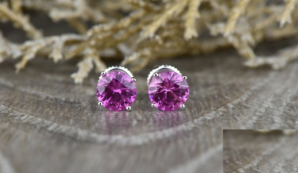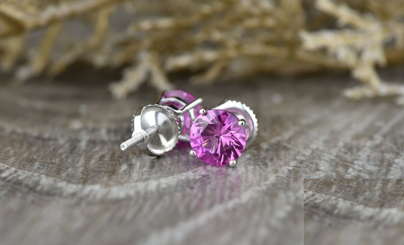 2ct Round Cut Pink Sapphire ScrewBack Bridal Stud Earrings 14k White Gold Finish