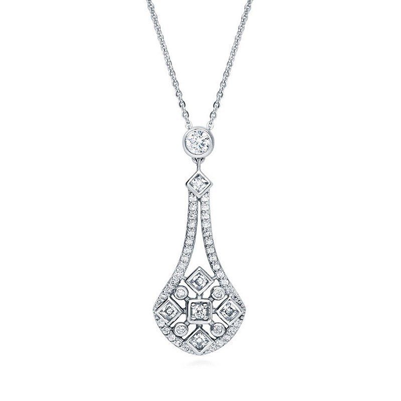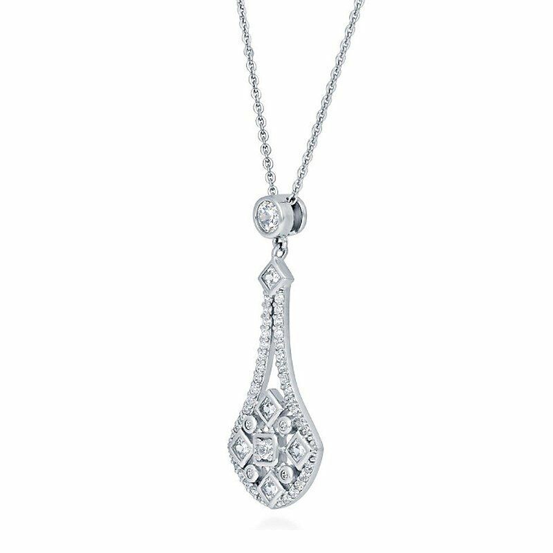 2ct Round Cut VVS1 Diamond Art Deco Drop Pendant 14k White Gold Finish NO CHAIN