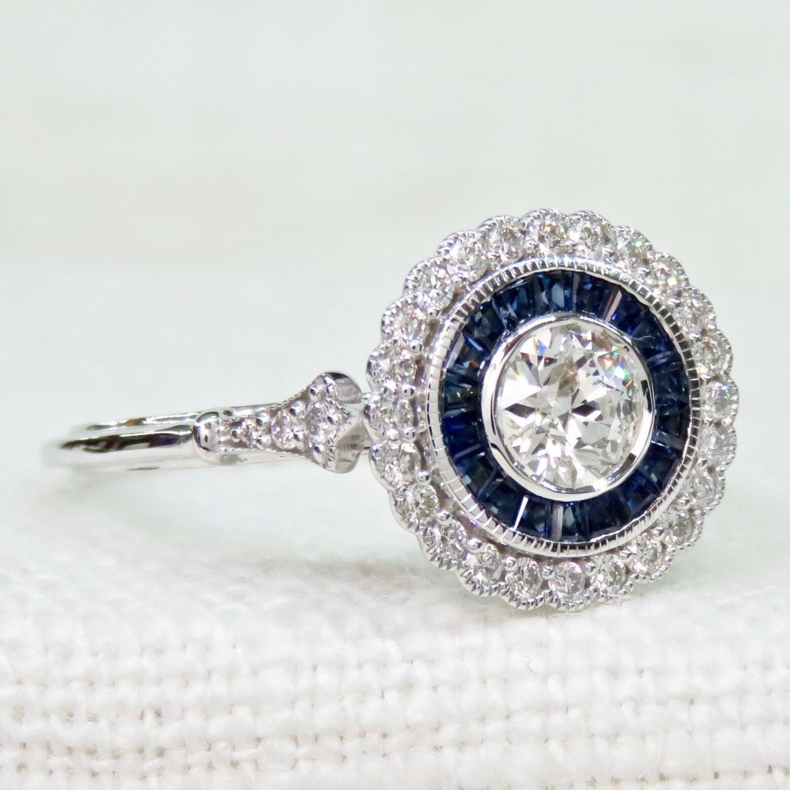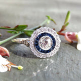 2ct Round Cut VVS1 Diamond Art Deco Floral Engagement Ring 14k White Gold Finish