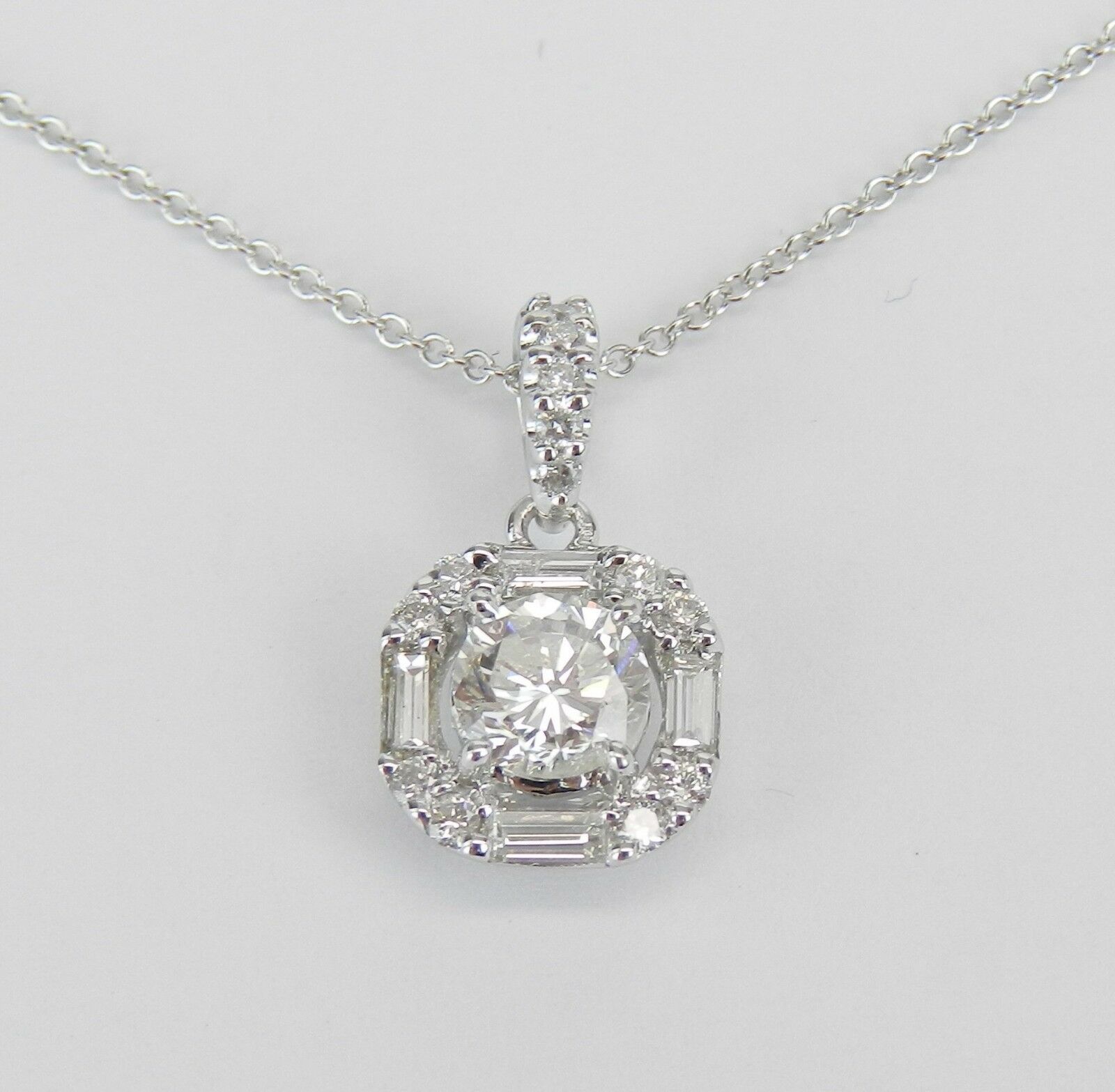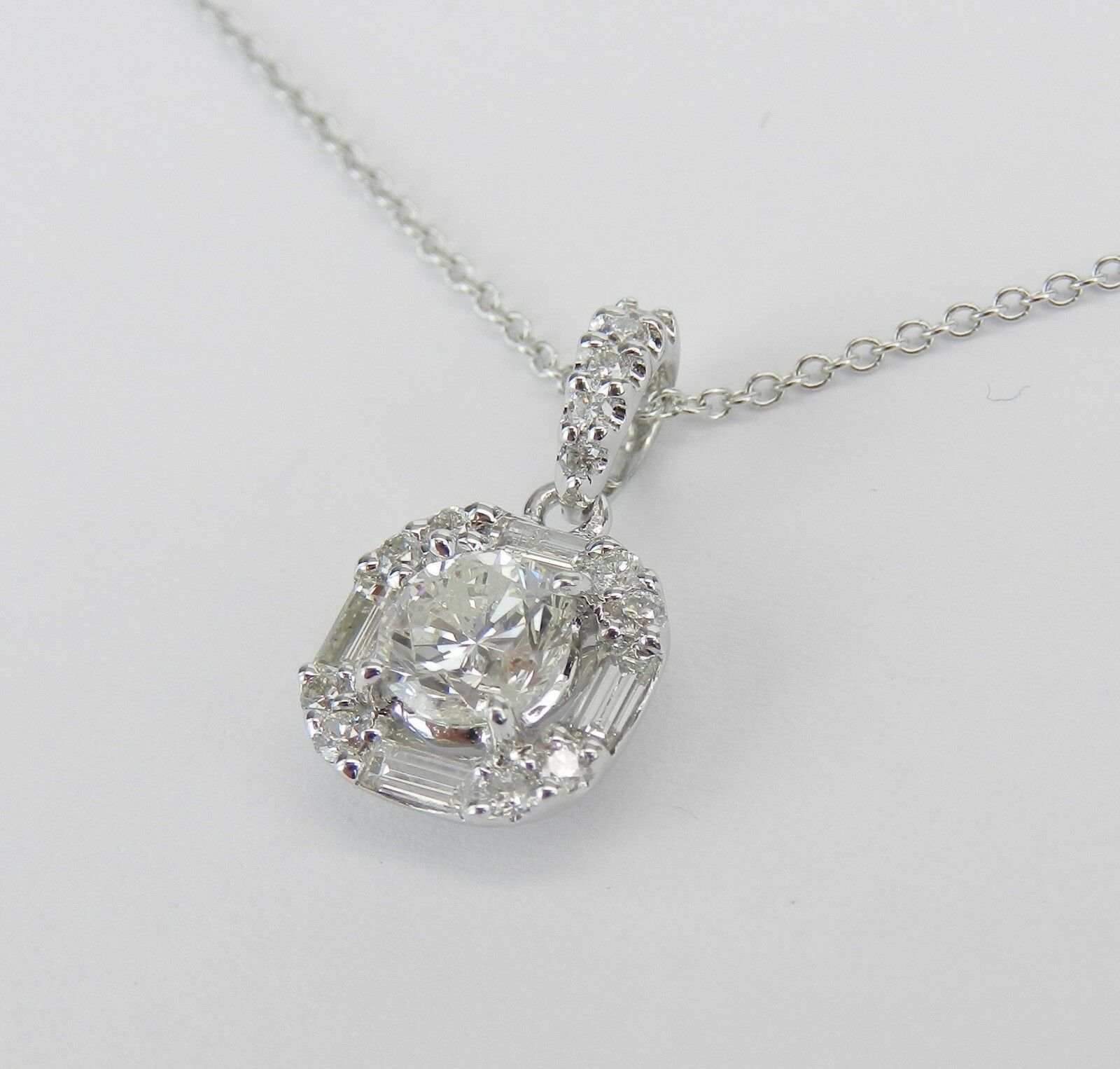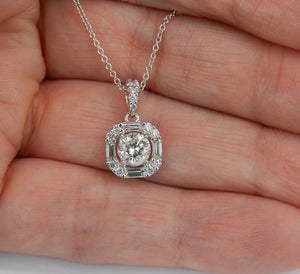 2ct Round Cut VVS1 Diamond Baguette Halo Pendant 14k White Gold Finish NO CHAIN