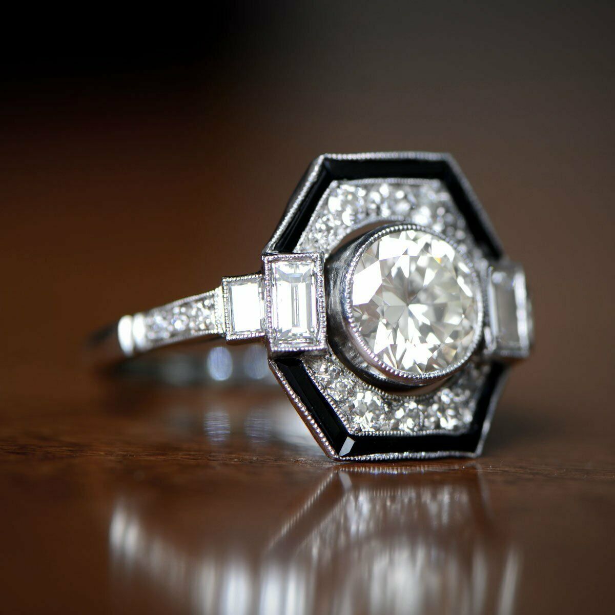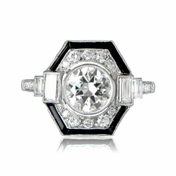 2ct Round Cut VVS1 Diamond Engagement Ring 14k WhiteGold Finish Art Deco Vintage