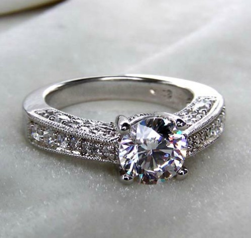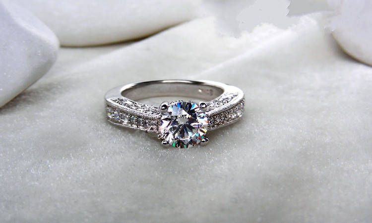 2ct Round Cut VVS1 Diamond Engagement Ring 18k White Gold Finish Antique Vintage
