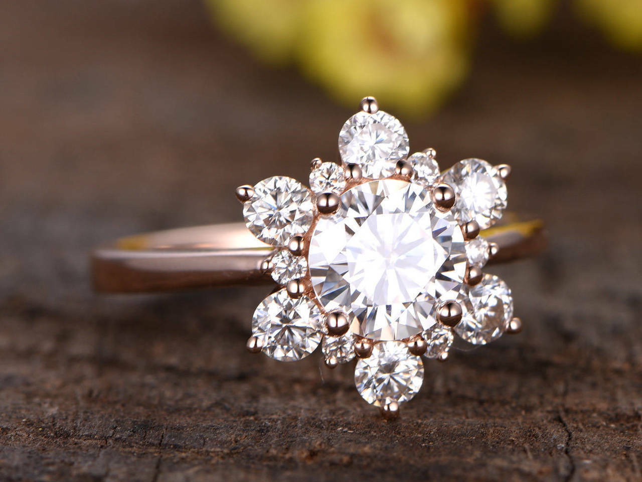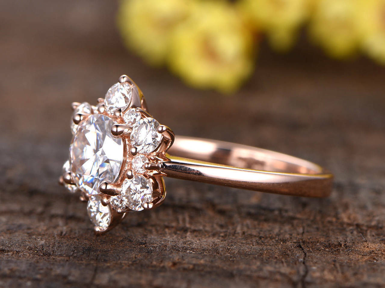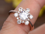 2ct Round Cut VVS1 Diamond Flower Solitaire Engagement Ring 14k Rose Gold Finish