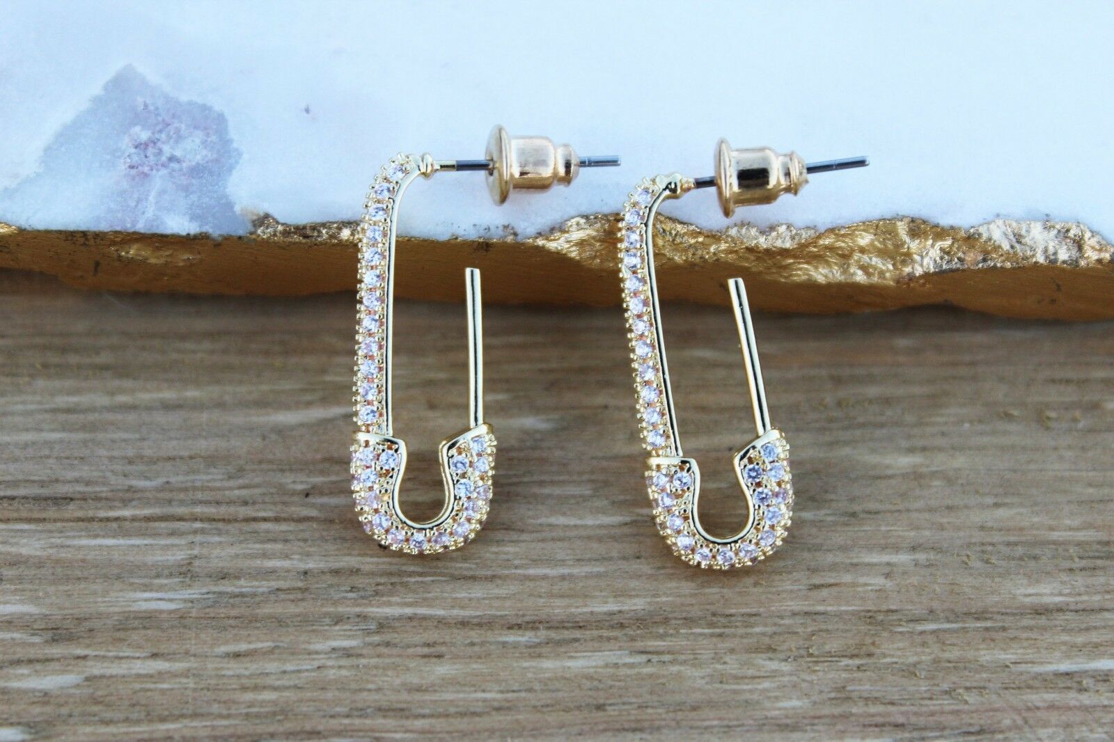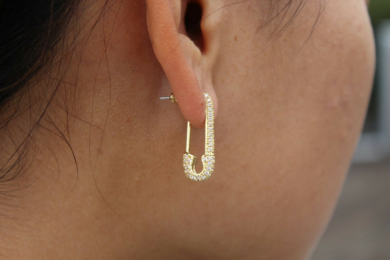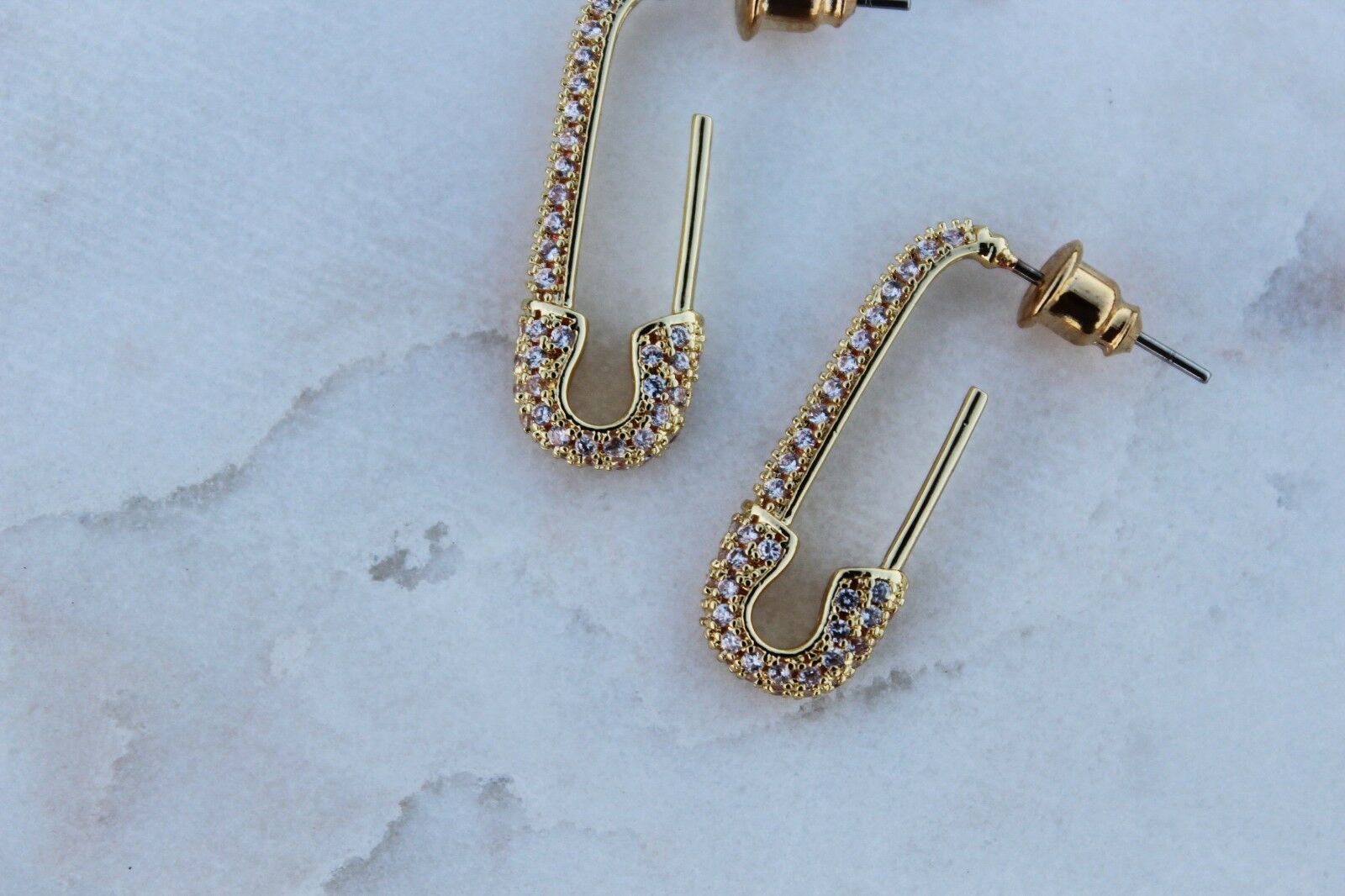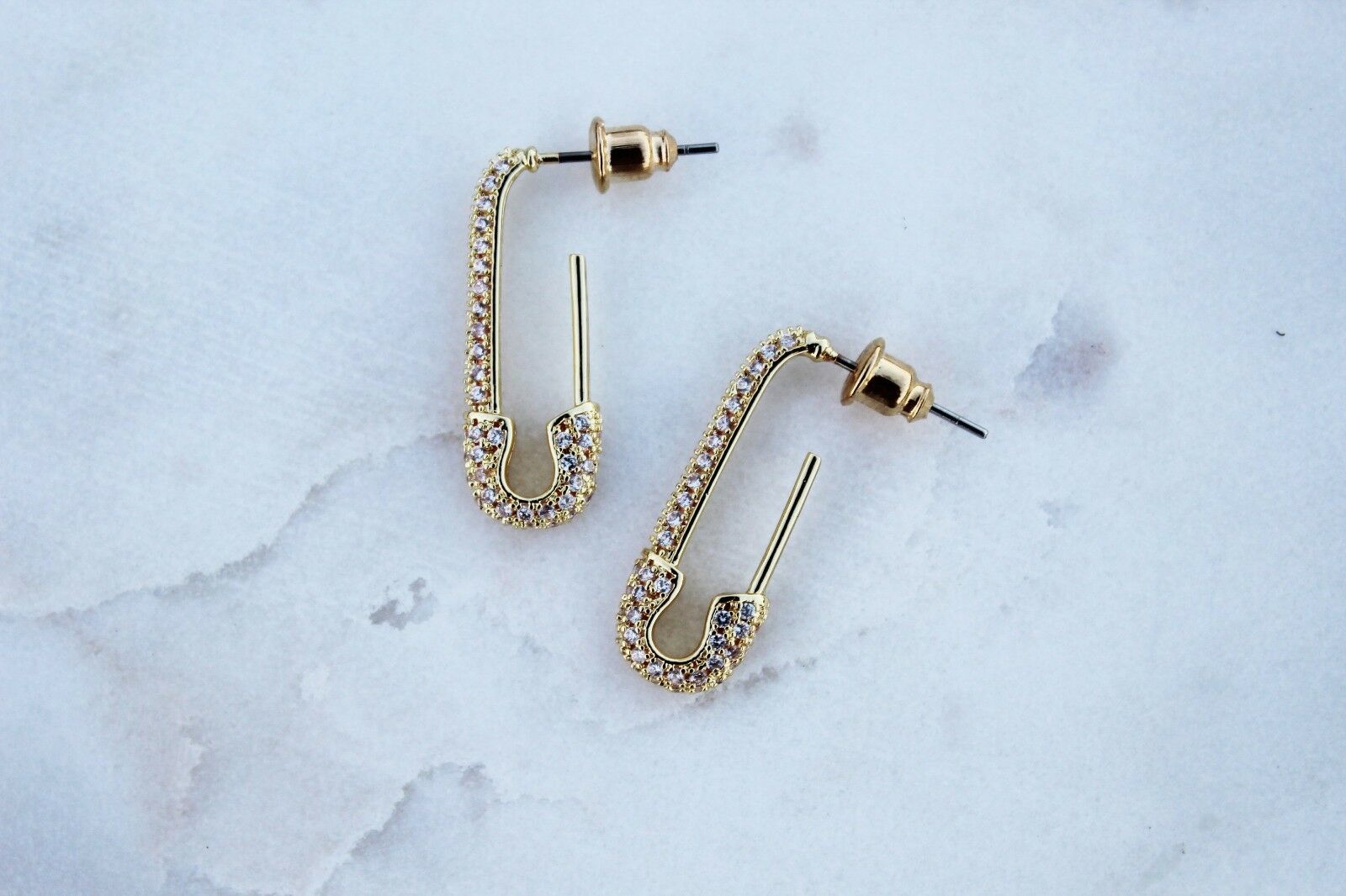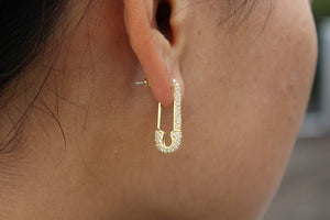 2ct Round Cut VVS1 Diamond Safety Pin Design Drop Earring 14k Yellow Gold Finish