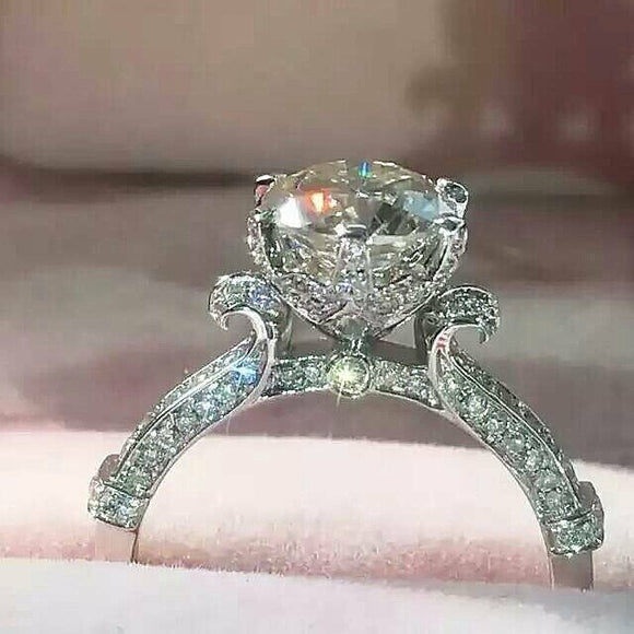 2ct Round Cut VVS1 Diamond Vintage Unique Engagement Ring 14k White Gold Finish