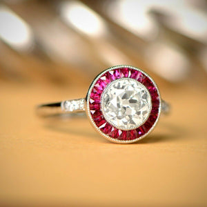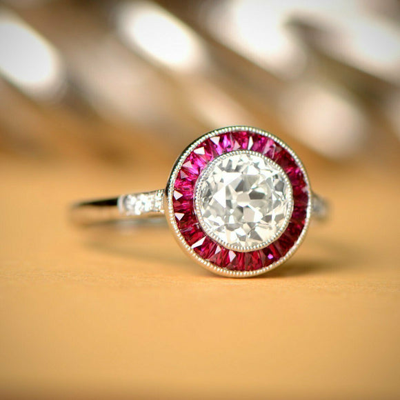 2ct Round Cut VVS1D Diamond Engagement Ring 14k White Gold Finish Halo Art Deco