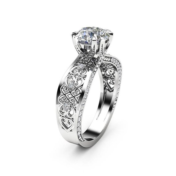 2ct Round Cut VVS1D Diamond Engagement Ring 14k WhiteGold Finish Unique Filigree