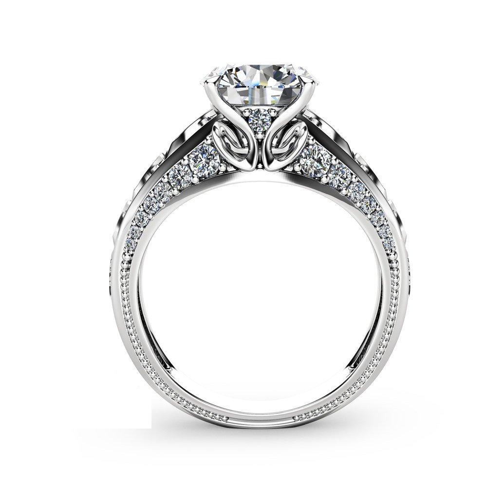2ct Round Cut VVS1D Diamond Engagement Ring 14k WhiteGold Finish Unique Milgrain