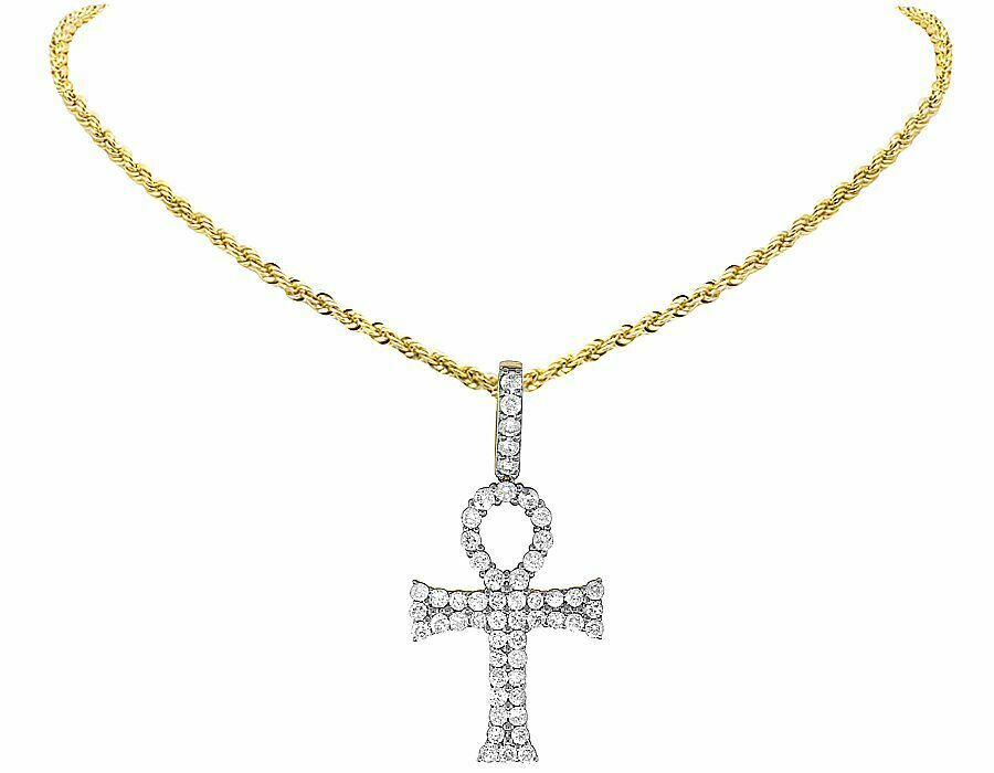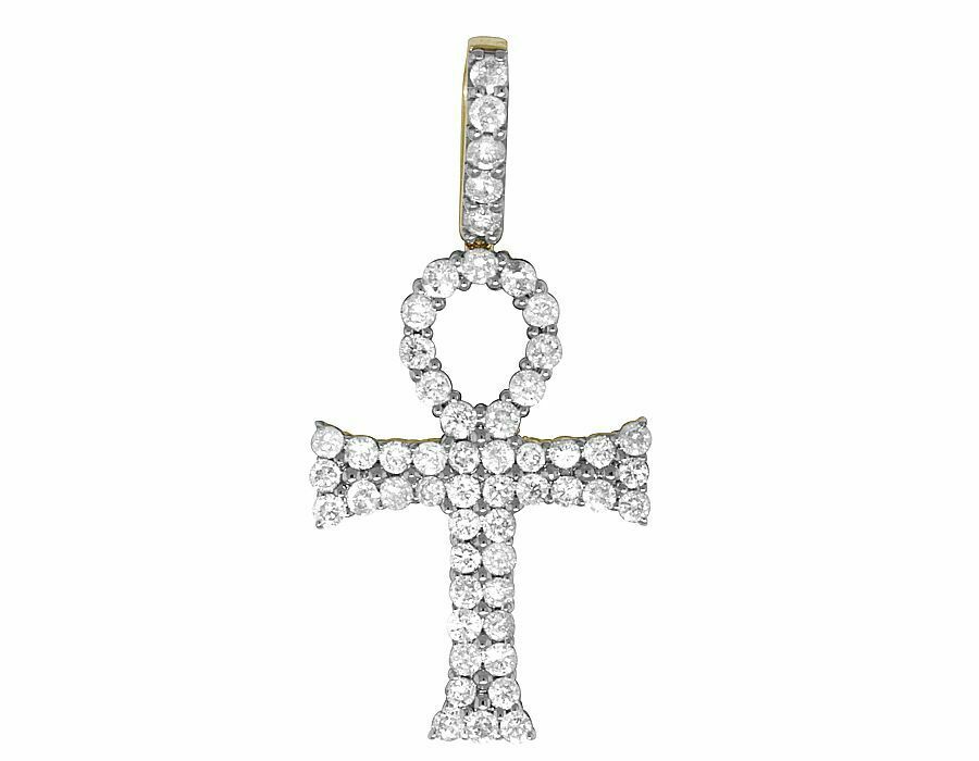 2ct Round Cut VVS1D Diamond Flared Ankh Cross Pendant 14k Yellow Gold Finish