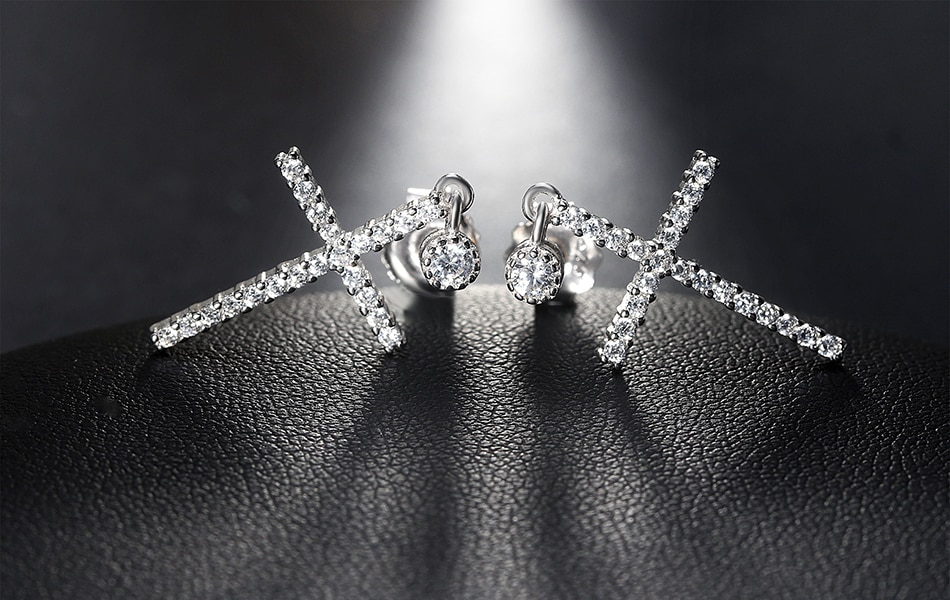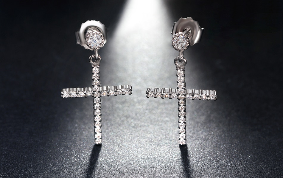 2ct Round Cut VVS1D Diamond Holy Cross Women Drop Earrings 14k White Gold Finish