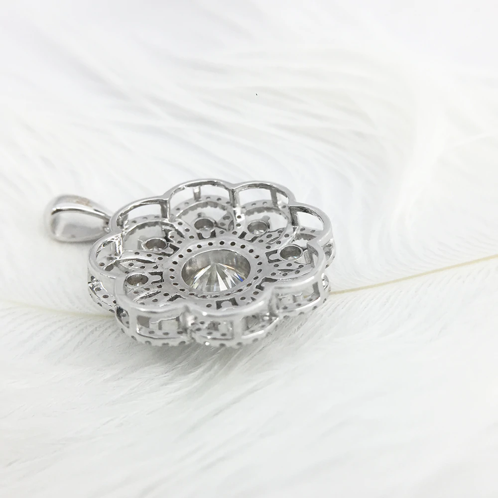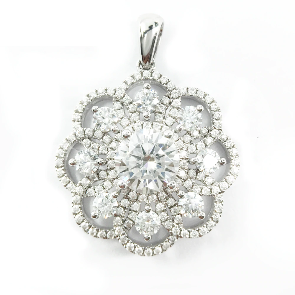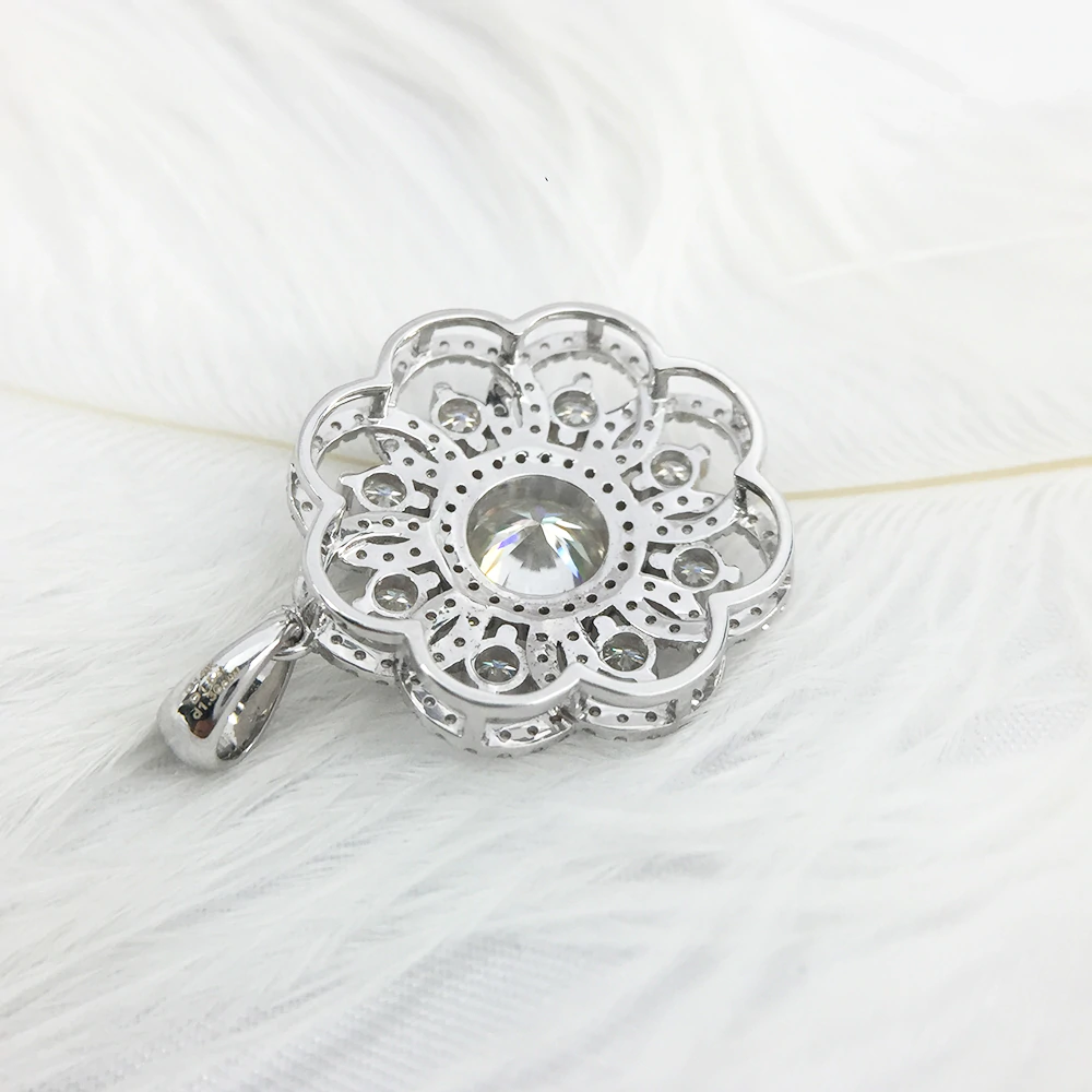2ct Round Cut VVS1D Diamond Pendant Flower Design 14k White Gold Finish NO CHAIN