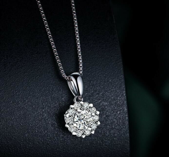 2ct Round Cut VVS1D Diamond Pendant Halo Cluster 14k White Gold Finish NO CHAIN