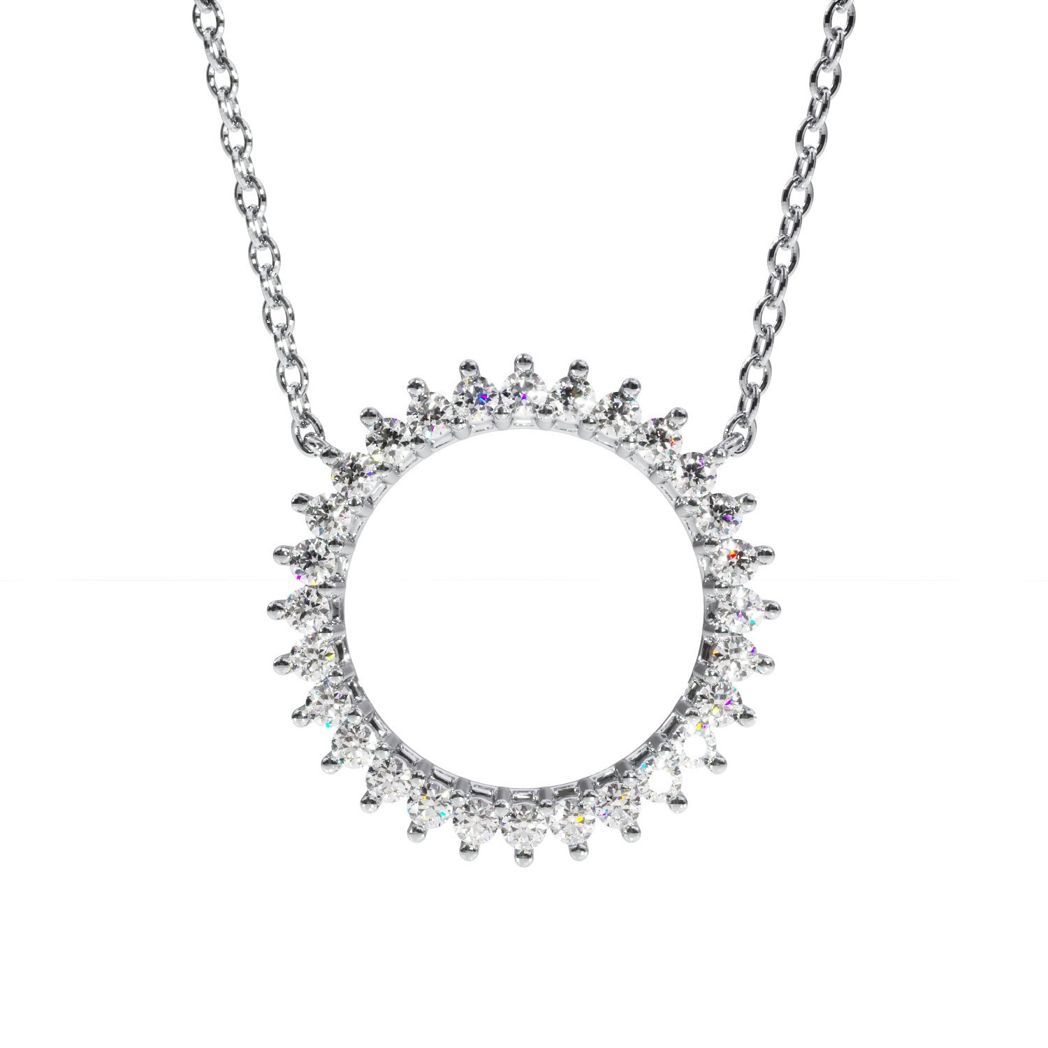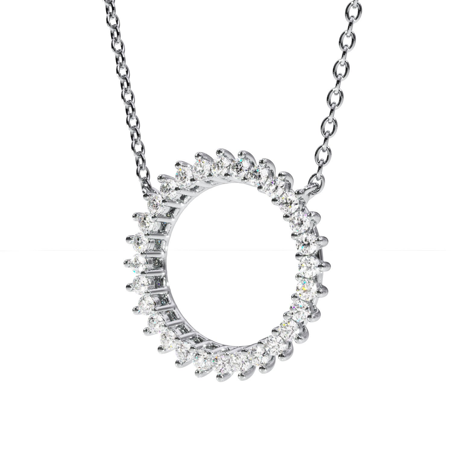 2ct Round Cut VVS1D Diamond Pendant with Chain Round Circle 14k WhiteGold Finish