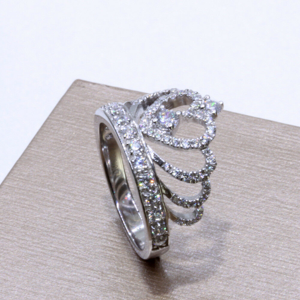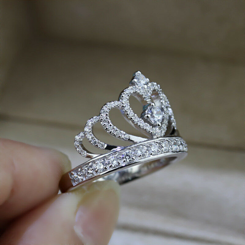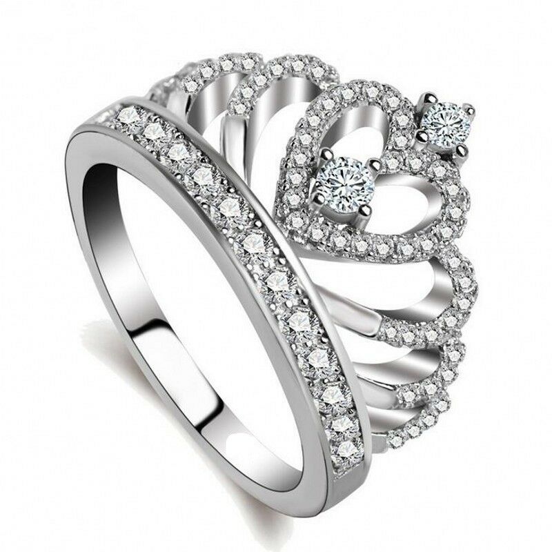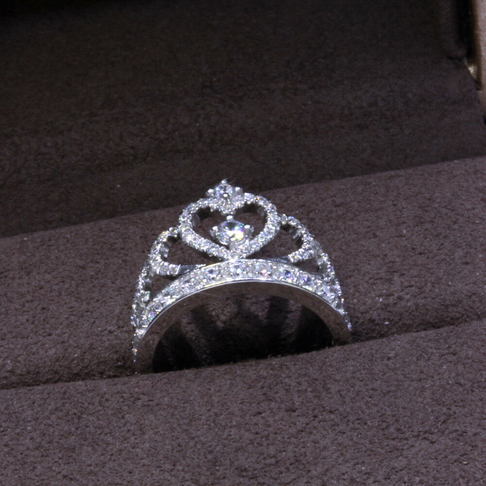 2Ct Round Cut VVS1D Diamond Princess Crown Engagement Ring 14k White Gold Finish