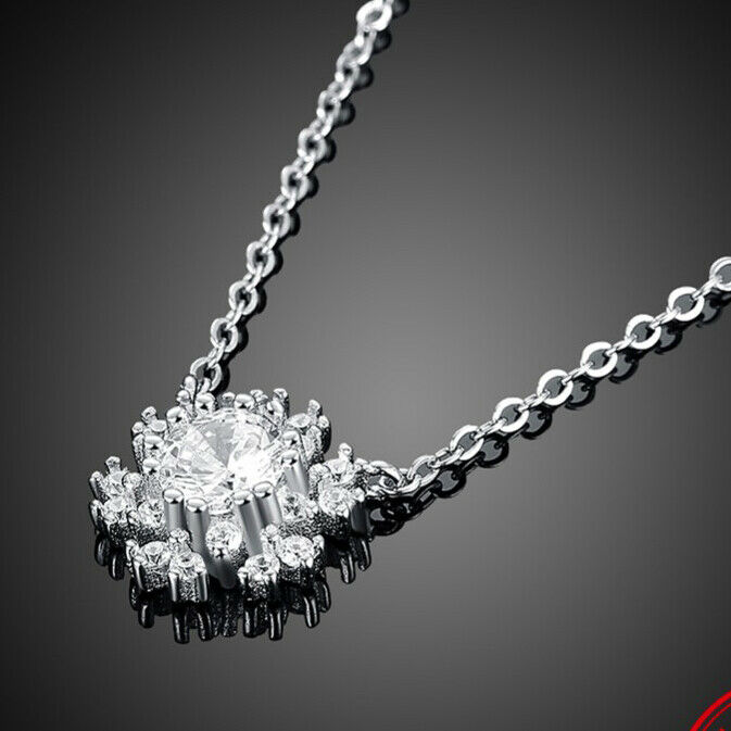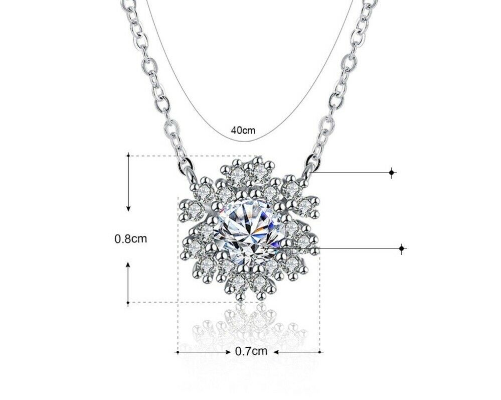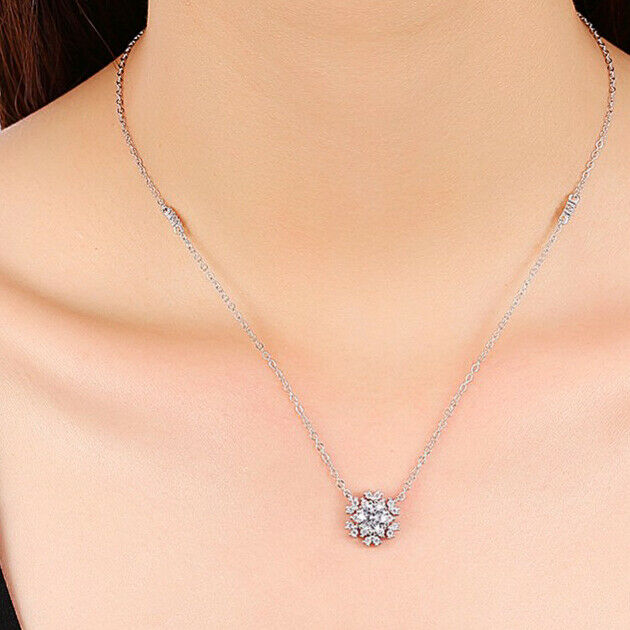 2ct Round Cut VVS1D Diamond Snowflake Pendant with Chain 14k White Gold Finish