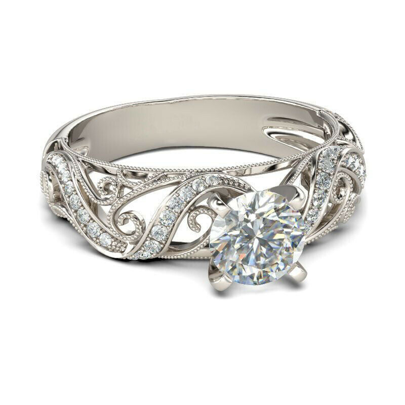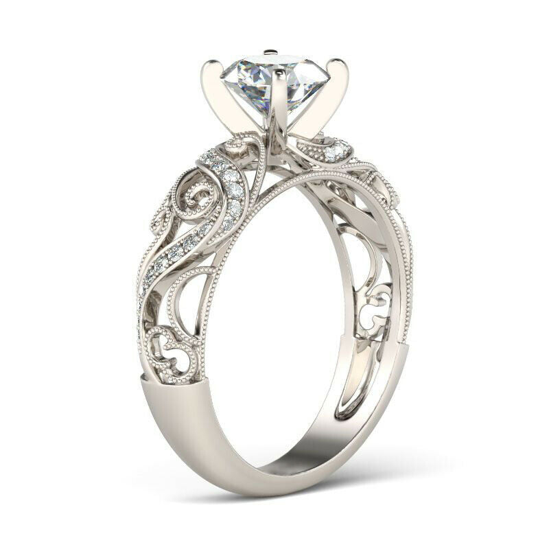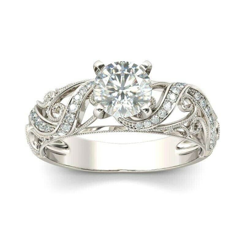 2Ct Round Diamond Filigree Accent Solitaire Engagement Ring 14K White Gold Over