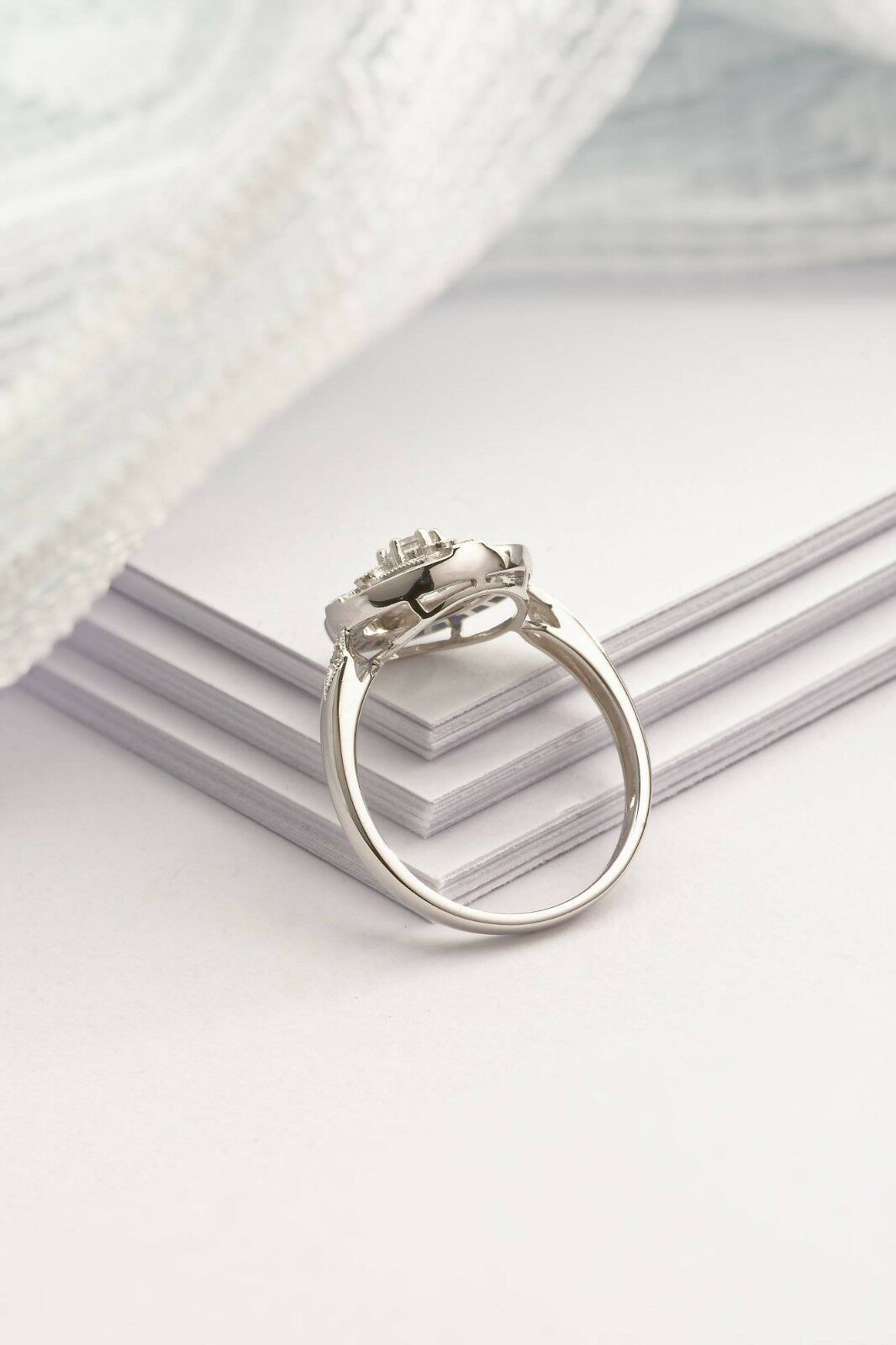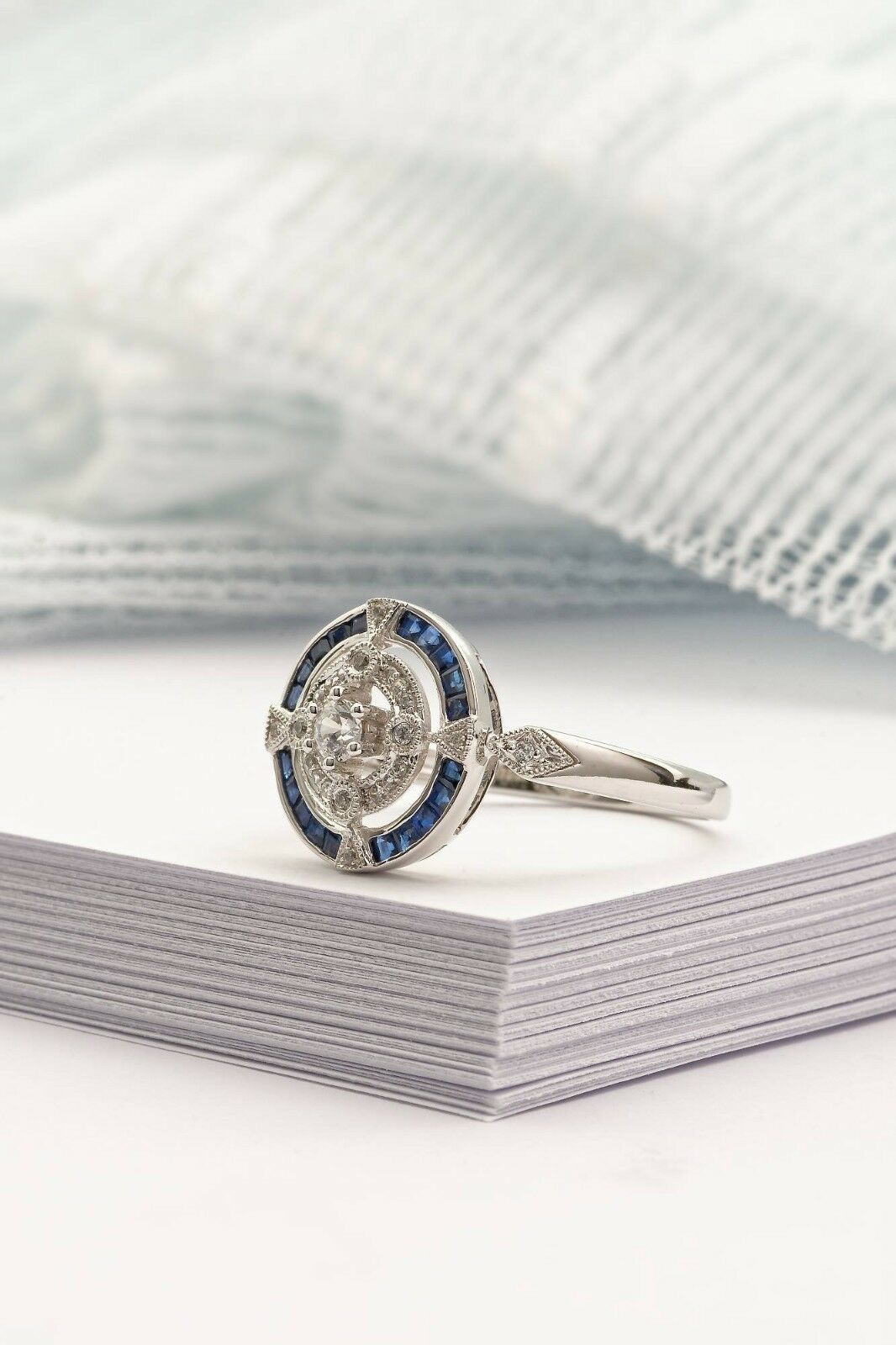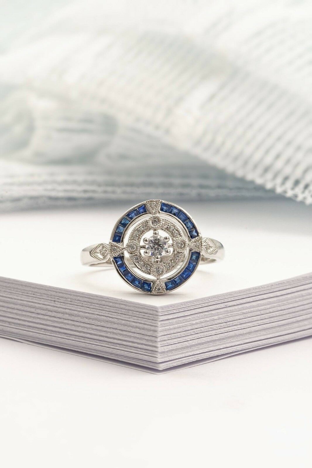 2ct Round Diamond Sapphire Halo Art Deco Engagement Ring 14k White Gold Finish