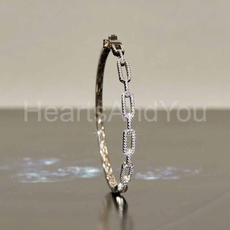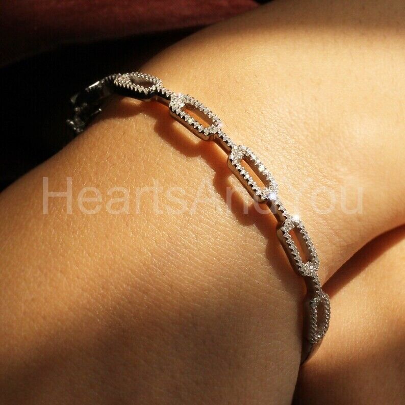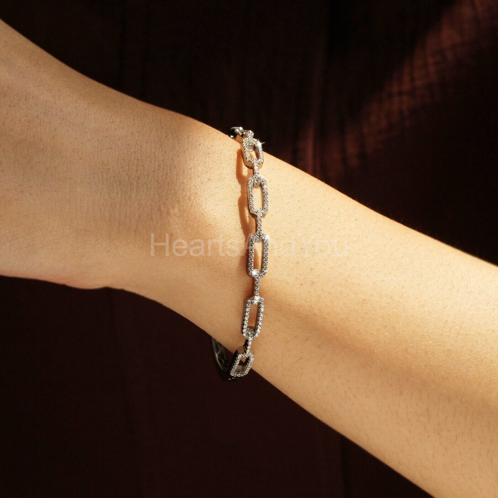 2ct Round Moissanite Pave Paperclip Link Chain Bracelet 14k White Gold Plated