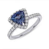 2ct Trillion Cut Blue Sapphire Engagement Ring 14k WhiteGold Over Halo Solitaire