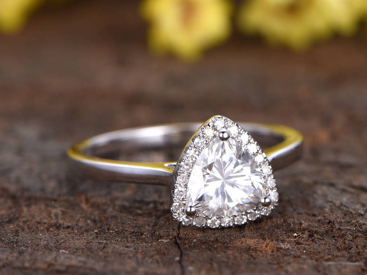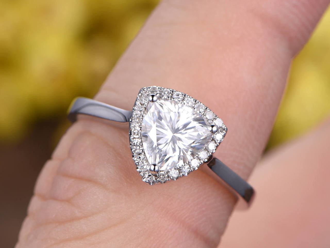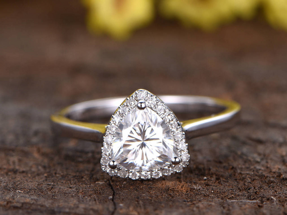 2ct Trillion Cut Diamond Engagement Ring 14k WhiteGold Finish Halo Wedding Women