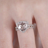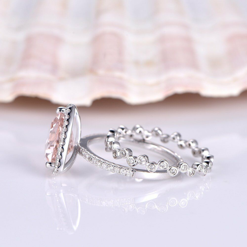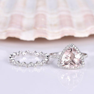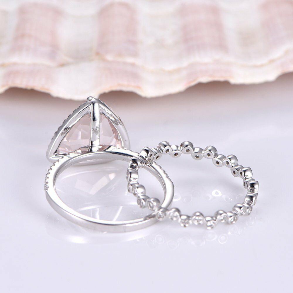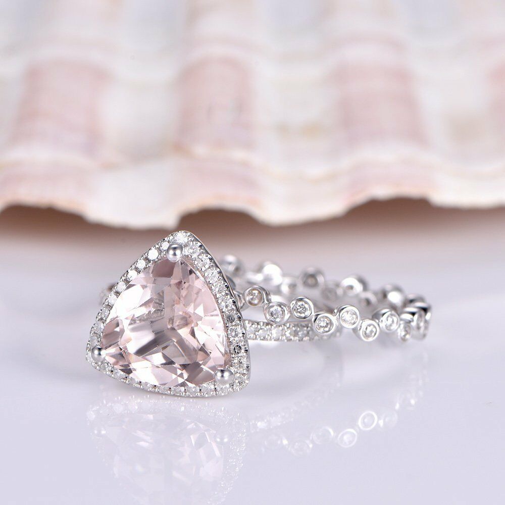 2ct Trillion Cut Peach Morganite Bridal Set Engagement Ring 14k WhiteGold Finish