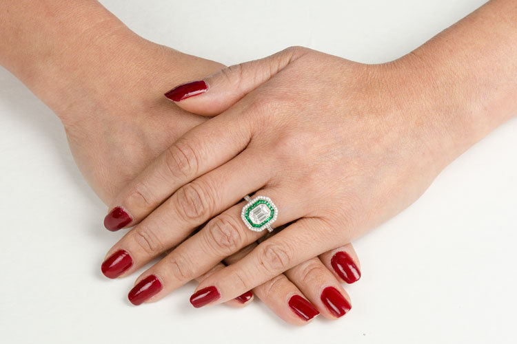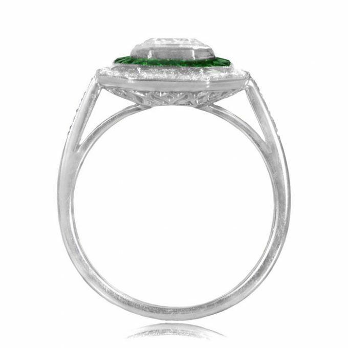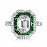 3.1ct Emerald Cut Diamond Green Emerald Halo Art Deco Ring 14k White Gold Finish