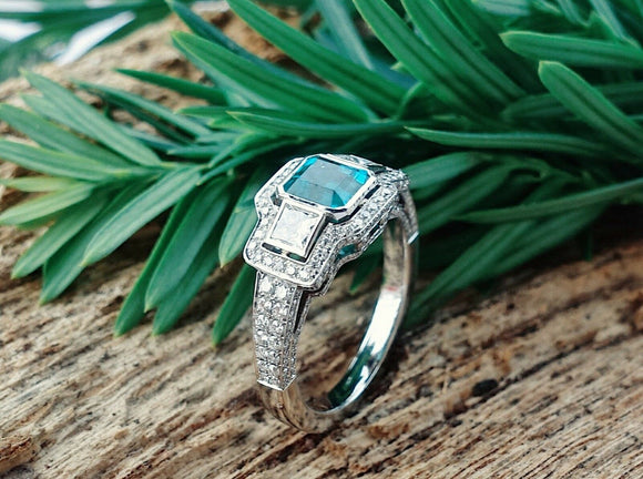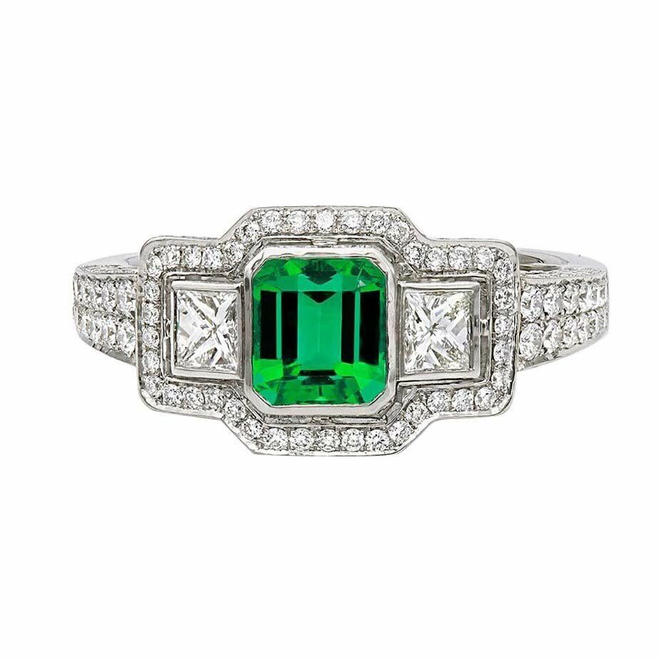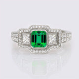 3.5ct Green Emerald Halo Trilogy Cocktail Engagement Ring 14k White Gold Finish