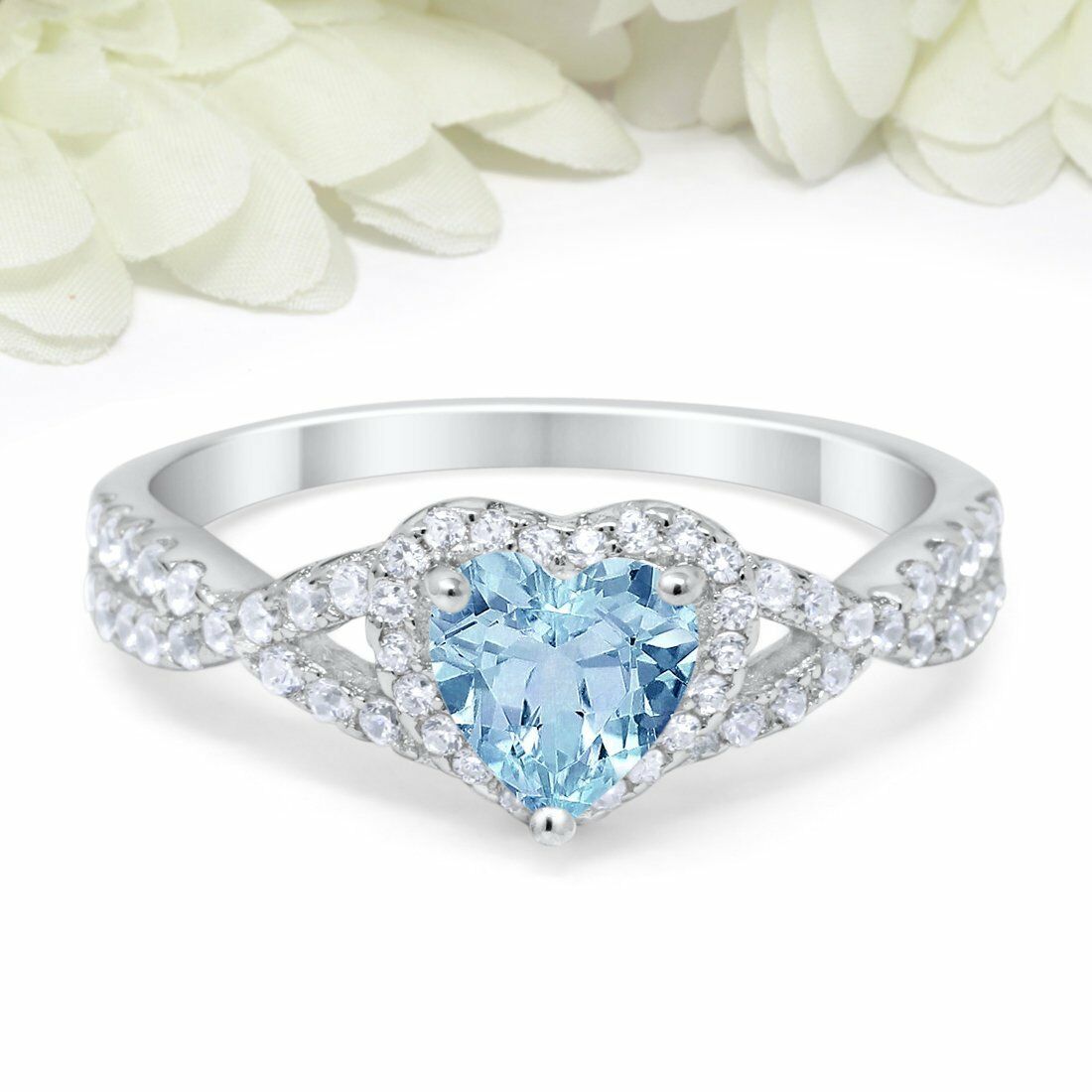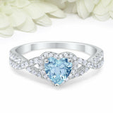 3.5Ct Heart Cut Blue Aquamarine Split Band Engagement Ring 14K White Gold Finish