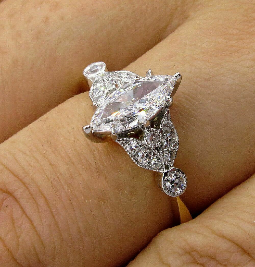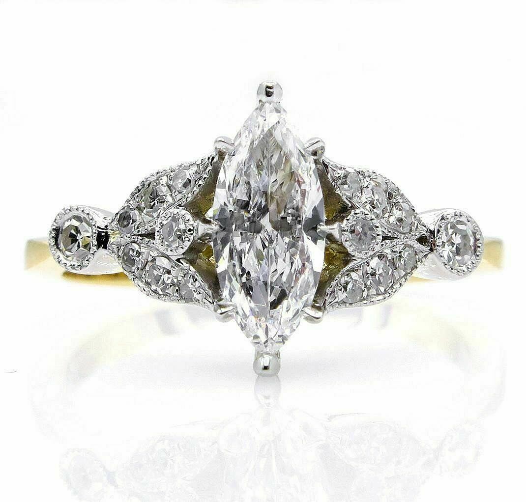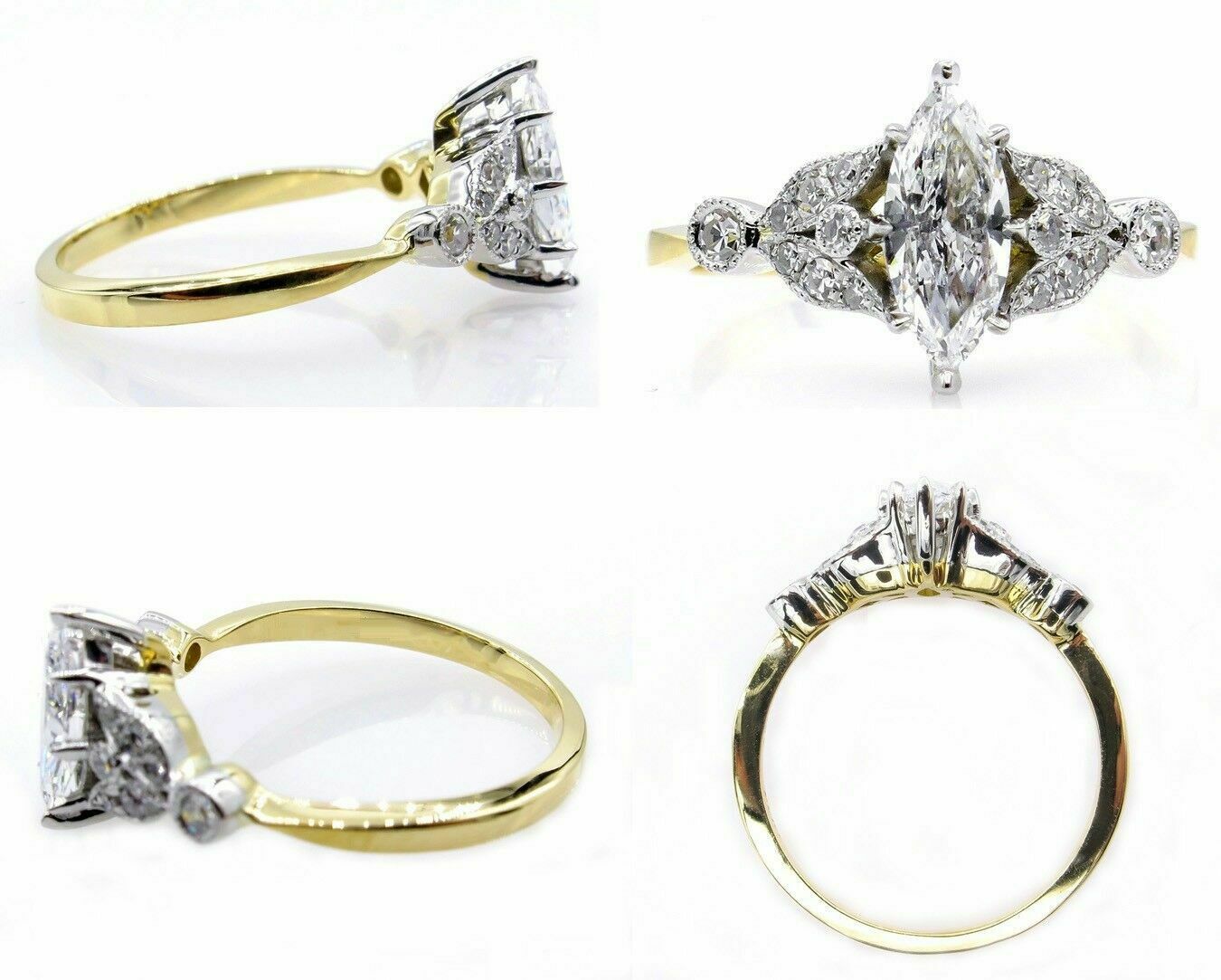3.5ct Marquise Diamond Vintage Leaf Accent Engagement Ring 14K Dual Gold Over