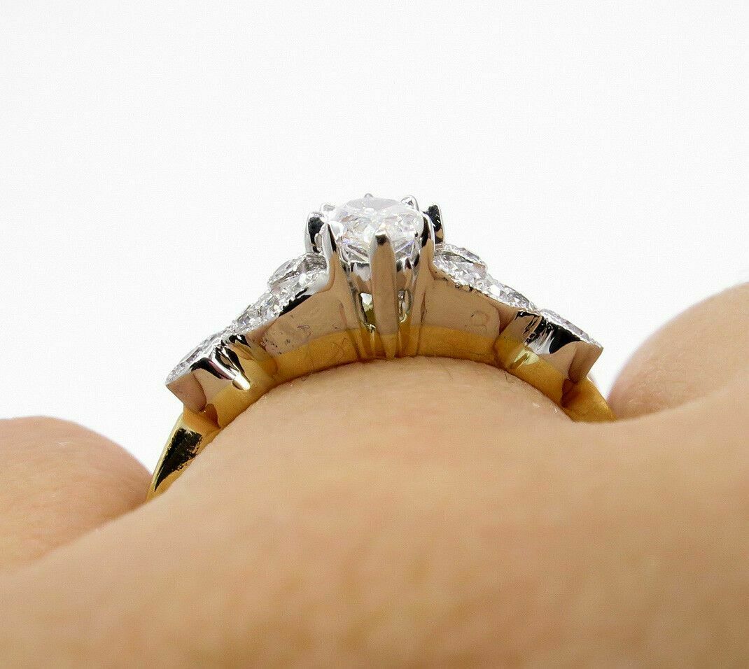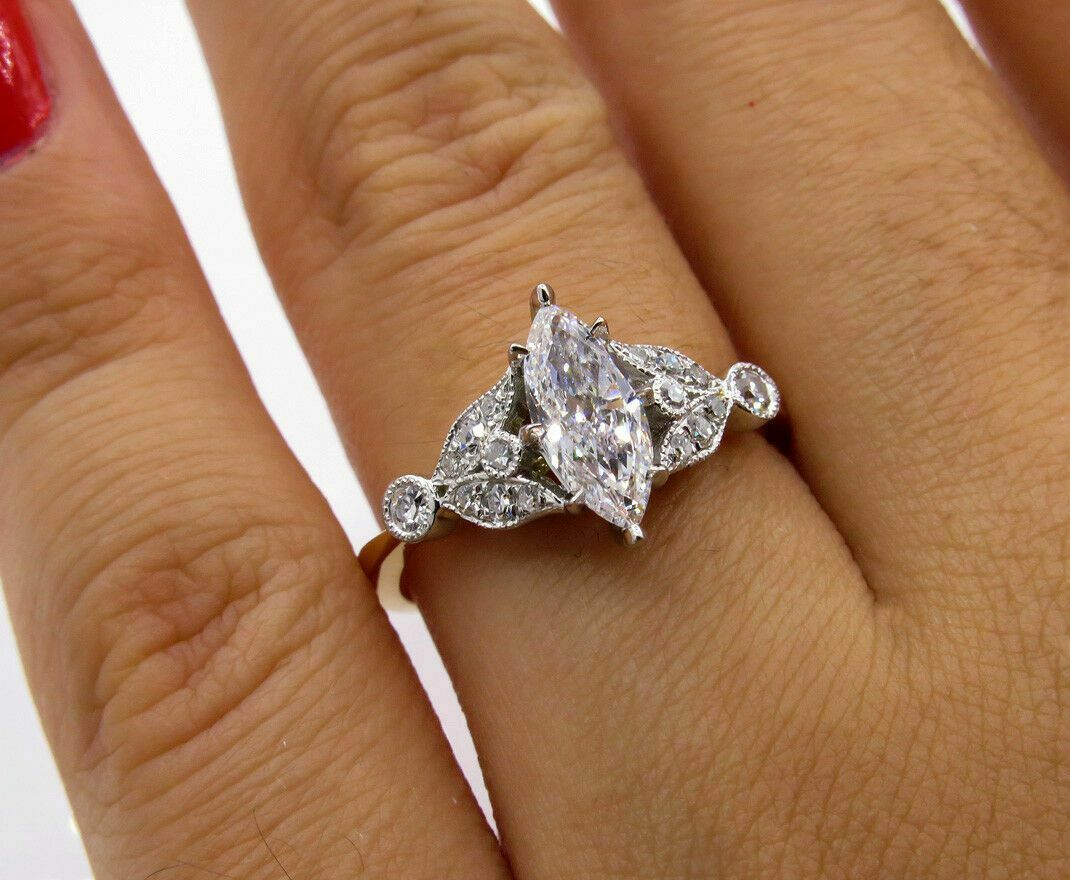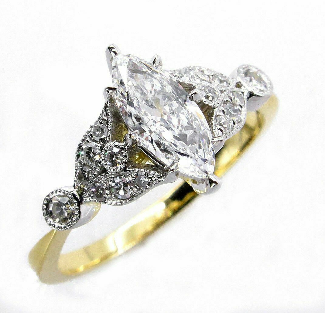 3.5ct Marquise Diamond Vintage Leaf Accent Engagement Ring 14K Dual Gold Over