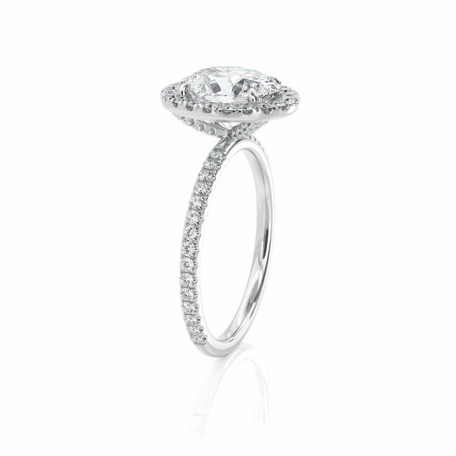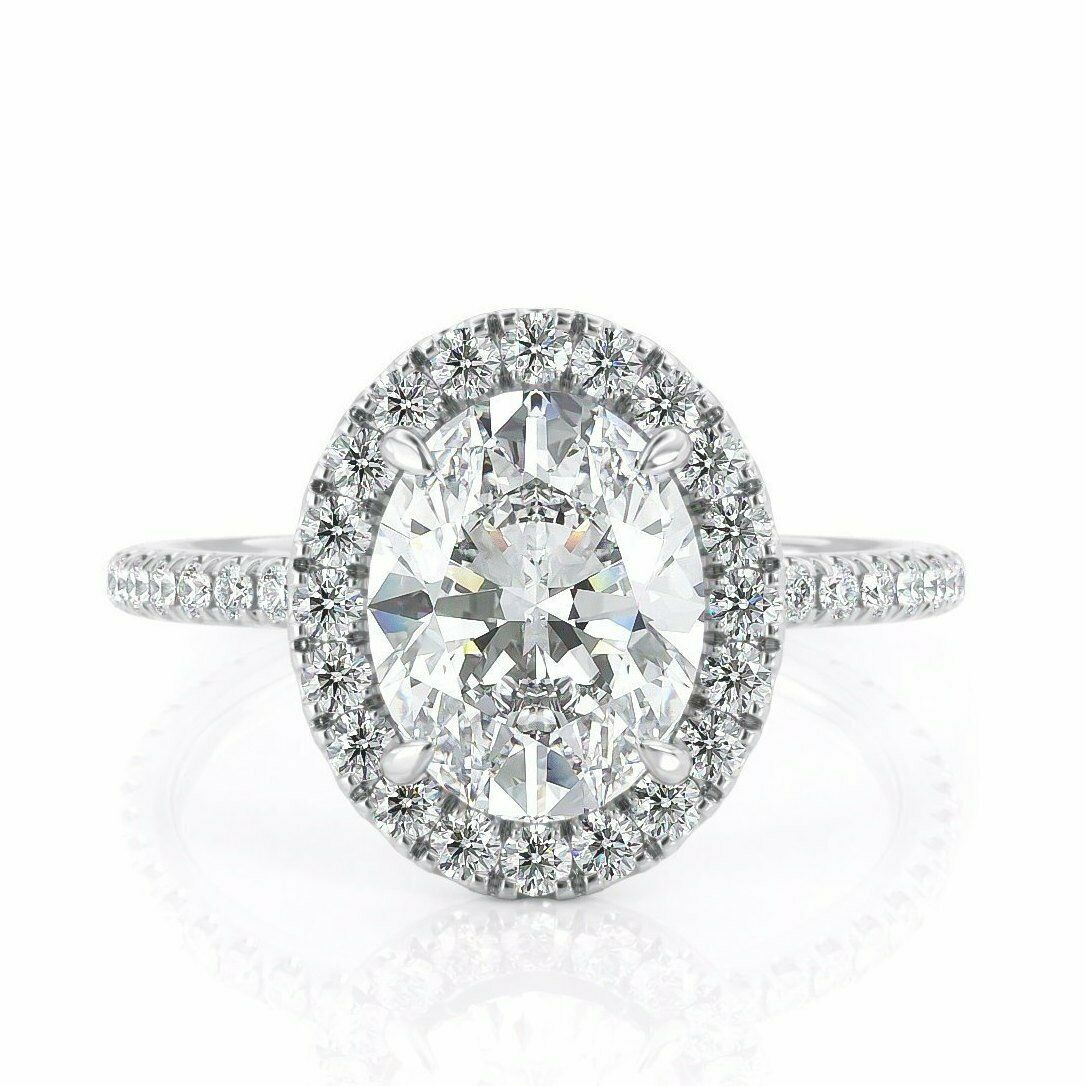 3.5Ct Oval Cut DVVS1 Diamond Accent Engagement Halo Ring 14K White Gold Finish
