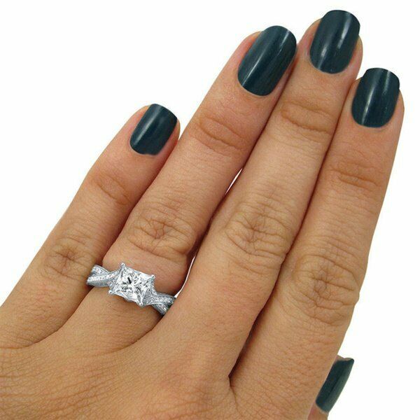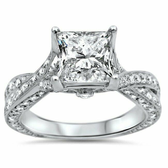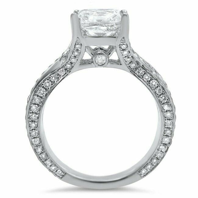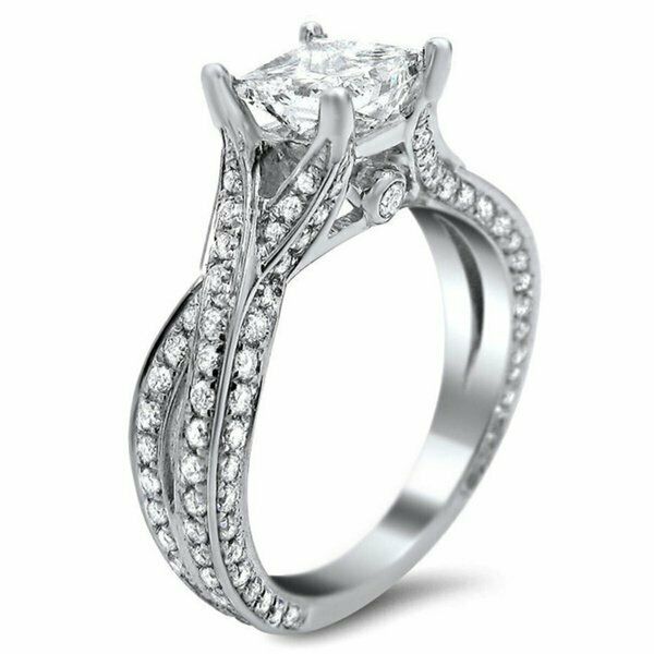 3.5Ct Princess Cut Diamond Split Shank Iced Solitaire Ring 14K White Gold Finish