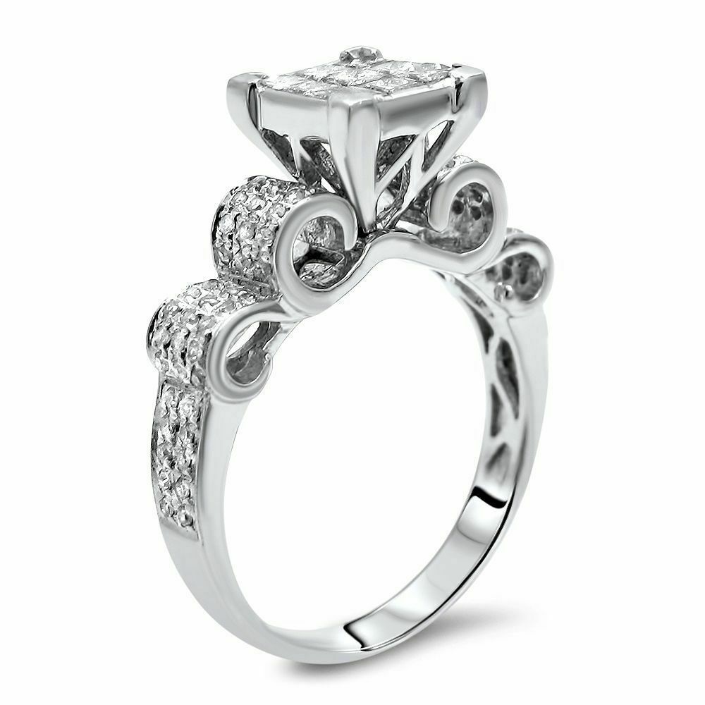 3.5Ct Princess Cut Diamond Stylish Curves Engagement Ring 14K White Gold Finish