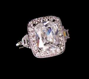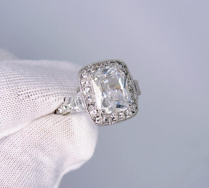 3.5Ct Radiant Cut VVS1 Diamond Halo Vintage Engagement Ring 14K White Gold Over