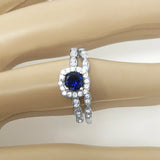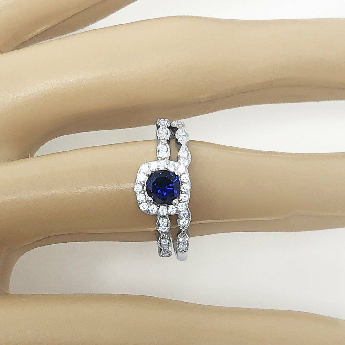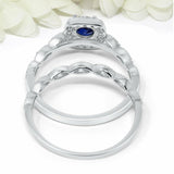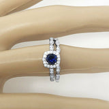 3.5Ct Round Cut Blue Sapphire Bridal Set Vintage Band Rings 14K White Gold Over
